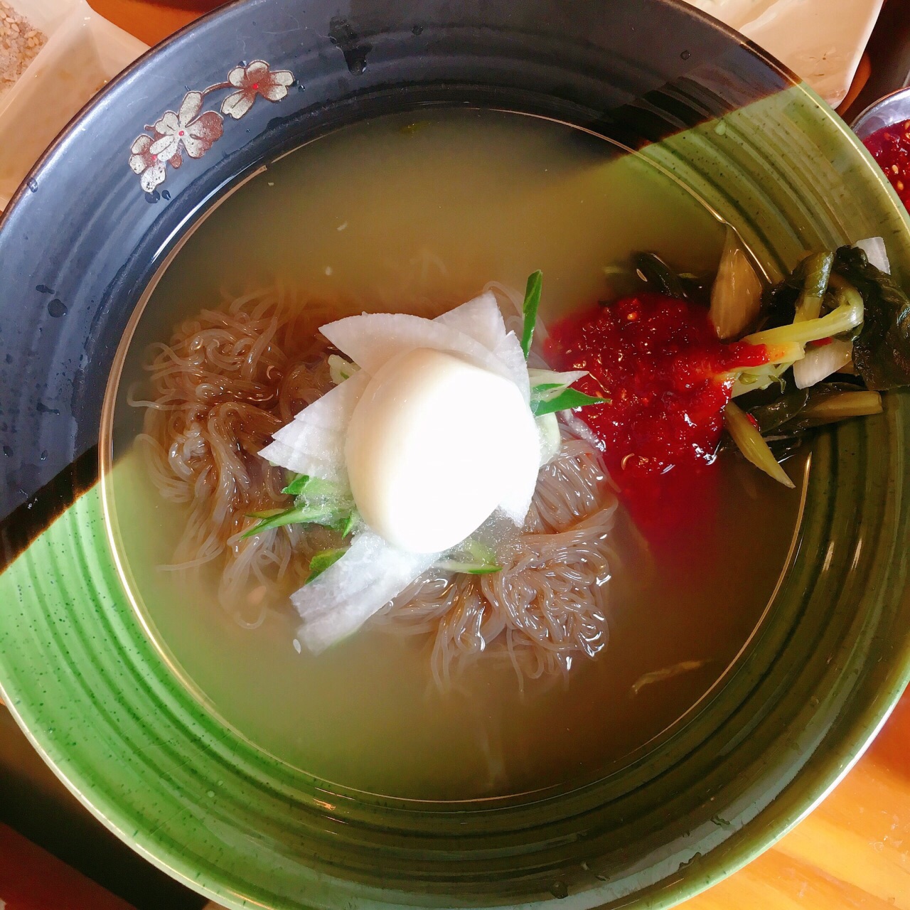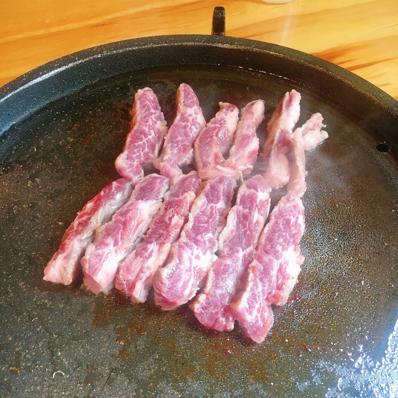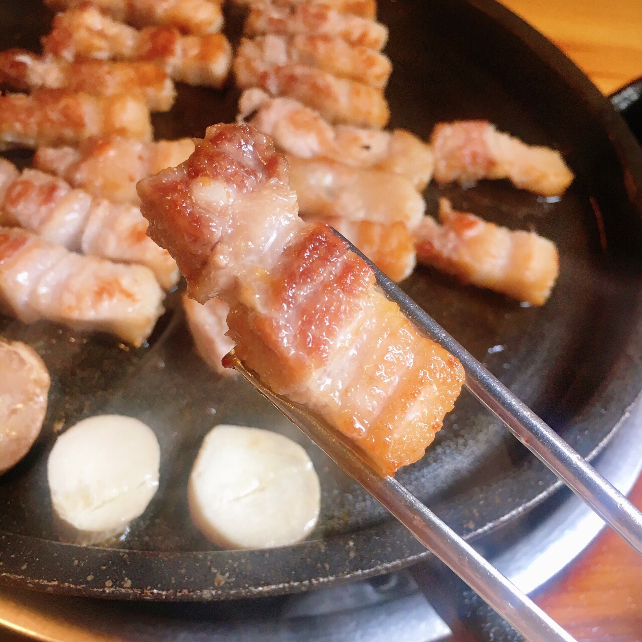 来明洞买衣服,走的又累又饿的。查了查附近的美食店,就来这边了。位置比较好找。 点的生五花肉+伊比利亚黑猪肋条肉+冷面 五花肉切超厚,后来烤的时候一边剪开一边爆汁,外焦里嫩的。 后来又加了一份伊比利亚黑猪肉,看起来和吃起来都很类似牛肉哎,但比牛肉略嫩一些我爱了! 还加了一个冷面,肉汤底很浓郁,不单独放黄芥末和醋也很好吃。 另外要提的就是他家的酱料都比较好吃,有一个辣酱是第一次吃到的口味,跟推荐哦~也有中文服务和帮助烤肉的店员,总体来说非常满意啦!