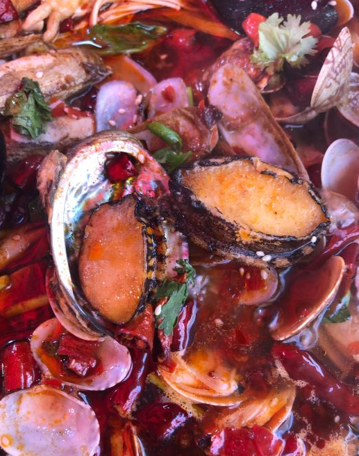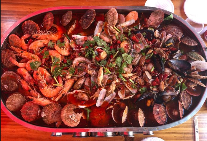 你看看,这一大锅海鲜,我的妈呀,两个人吃的饱饱的,还剩了20多只虾,十几支扇贝,打包带回家又吃了两顿