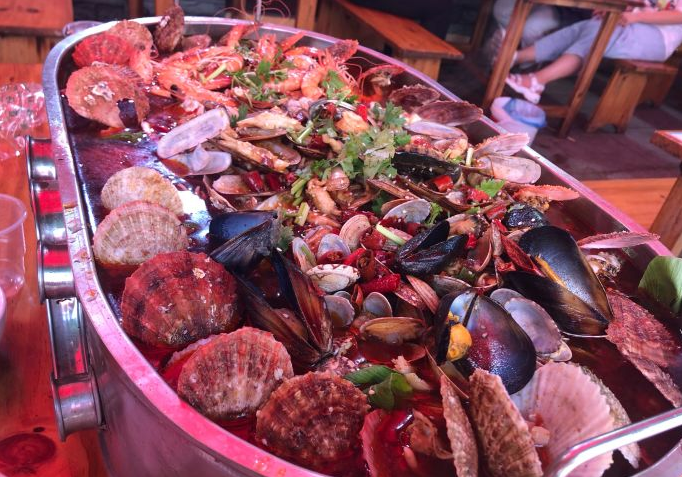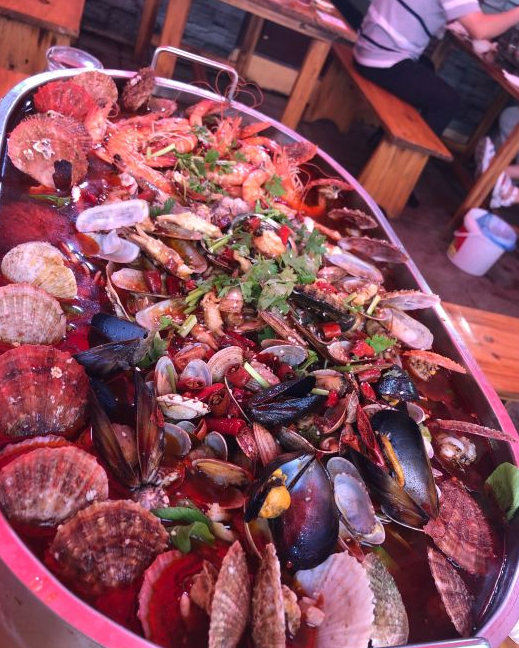 真没有想到,在风景区内有这么性价比好的良心店。别的不说,你看看,这一大锅海鲜,我的妈呀,两个人吃的饱饱的,还剩了20多只虾,十几支扇贝,打包带回家又吃了两顿。再说说海鲜质量,作为一名青岛的吃货,作为一名一天不吃海鲜能死的人,我可以拍着胸脯保证,我吃的那一锅每一位海鲜都是活着被煮的,虽然有点可怜,但想想他们生命的使命和价值本就如此。