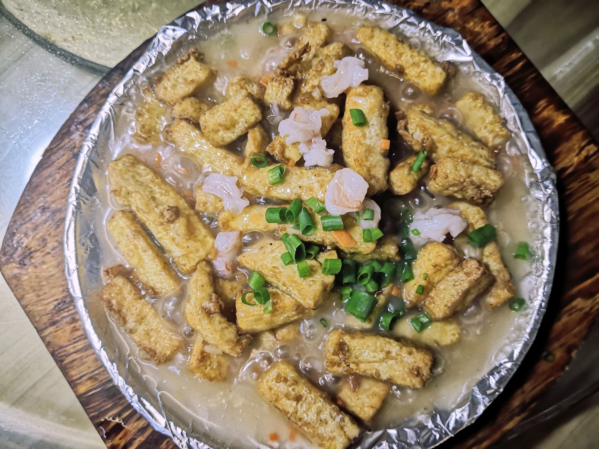 装修没啥大作为的鑫鸿达,走的是招牌菜和服务路线吧,来过几次,老板娘服务都一如既往,热情有度。 对他们的煎蟹味道加以肯定,浓浓的姜香,蟹香肉鲜,是古早的味道。 招牌食神蛋豆腐:这次真有食神的味道了,上次觉得一般提了意见,大有进步呐。豆腐外衣娇脆,淋上的鲜虾汤汁,香甜可口。 杂鱼酱油水,除了份量比较少,鱼很清甜。 芒果汁确定是鲜榨,不是粉调,兑了些水。