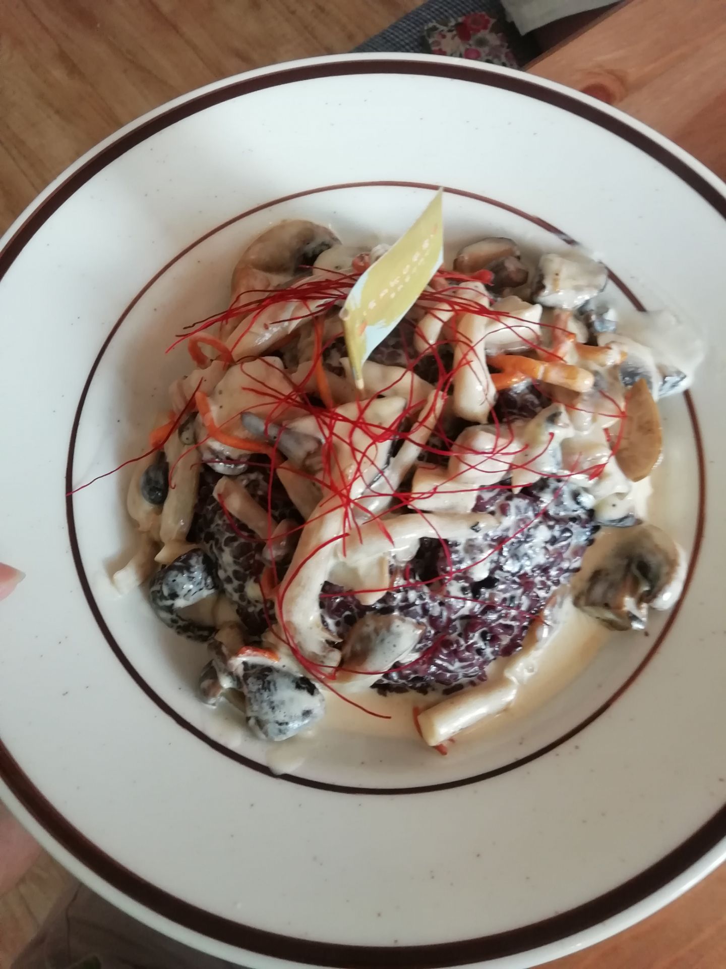 友情提示:必须预约。微信点餐并支付成功后才算预约成功。 大概在小鱼山和康有为故居中间的位置,就在小鱼山下来正对的那条路上,进院子后一直往上走,店面不大,挺清新的一家小店,一中午就四桌。 饭菜品相不错,味道的话就仁者见仁智者见智了。我感觉那个大虾沙拉和昆布火锅还算是实至名归的。金枪鱼牛油果饭里的金枪鱼酱拌着饭很好吃,但是牛油果太硬了,不好吃。意面里的牛肉丸个别的偏咸,总体肉质有点紧硬。白酱菌菇饭味道蛮香浓的,但是感觉少点滋味。所有的饭里都是黑米饭,米饭太多配料相对少,黑米饭偏硬,吃了很实落。年糕我觉得一般般,孩子喜欢吃,吃了不少。