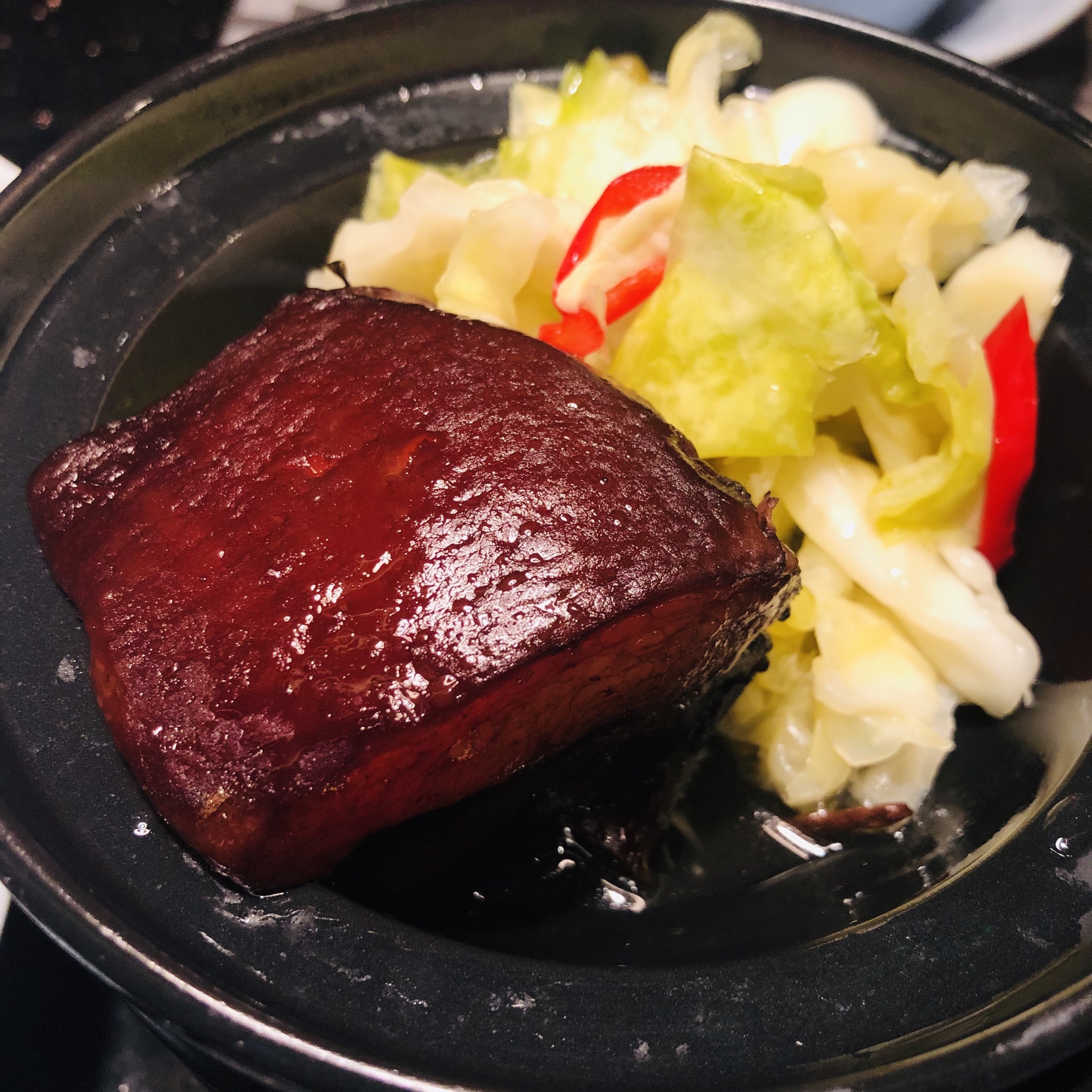 入座有送上餐前小点,结束有水果,服务妹子很nice,好评。 藕带辣度不够,感觉武汉的更好吃;红烧肉配泡菜简直太绝了,虽然按照我的口味,红烧肉还可以放一点糖,但是肉质酥烂还是很不错的,关键泡菜太好吃了;杭卤肥肠并没有网友说的惊艳,一般般吧,糯米酱鸭简直就是一个大肉粽,酱鸭味的,还不错,糯米很糯酱香味也正好,但是鸭子就不怎么好吃了;西湖牛肉羹牛肉感觉是切好的扔进去的,比较硬,不怎么好吃。总体而言,菜有点偏咸,但是还不错。