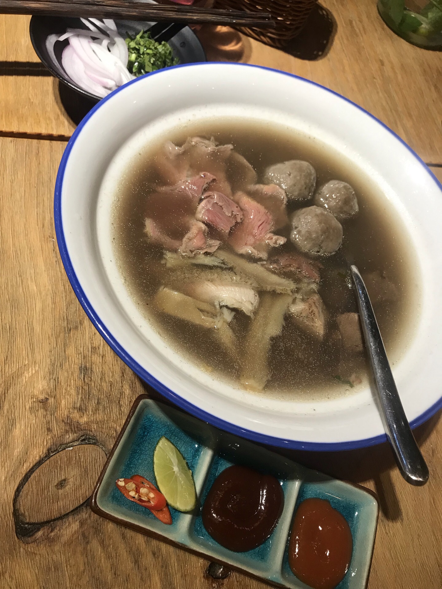 越南火车头汤河粉牛肉分量足,菠萝猪颈肉味道美,椰奶凉糕芳香清凉不腻,咖喱饭也很地道,总体价格实惠。美中不足的是排队等候的时间久。