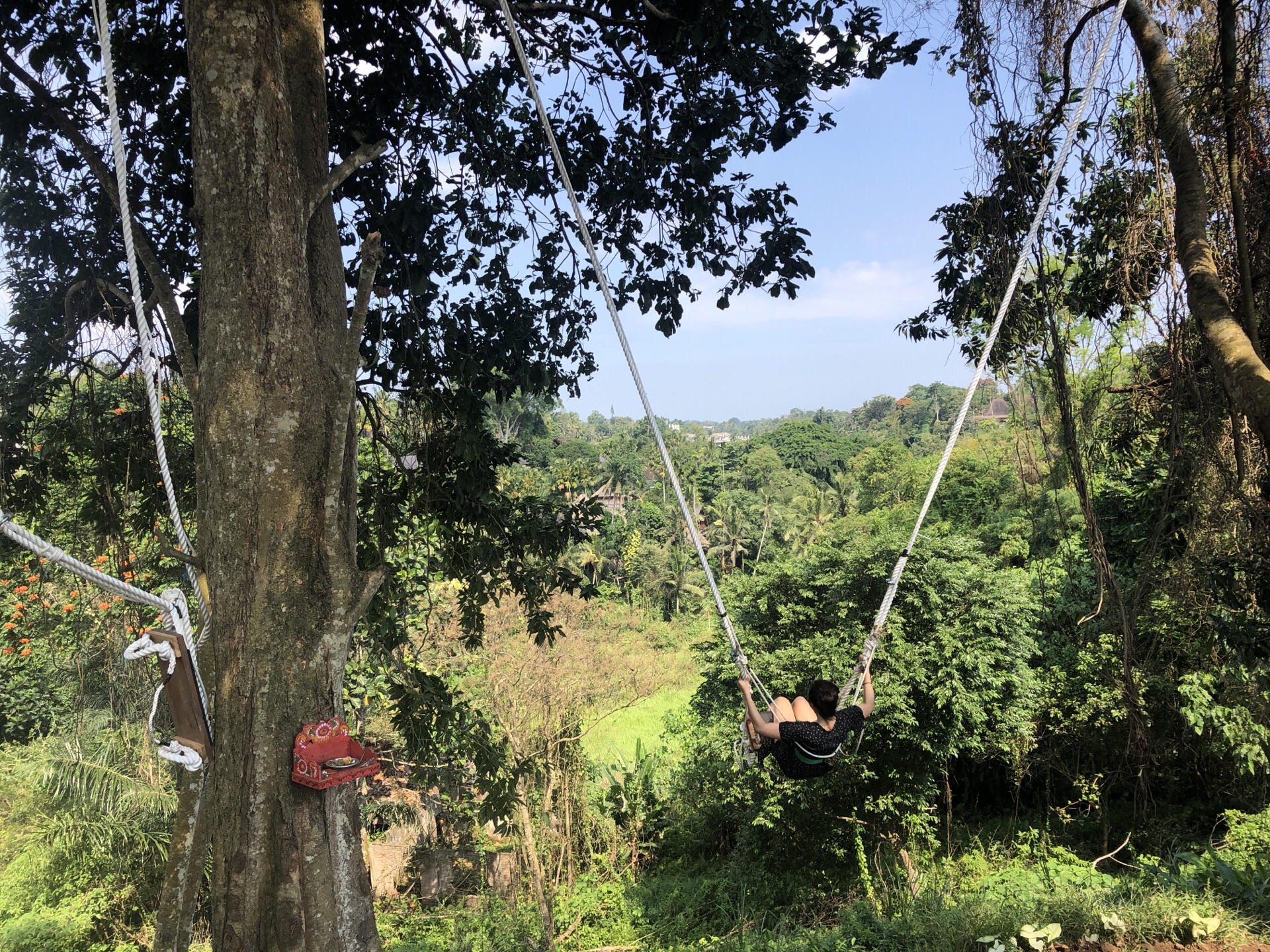 campuhan ridge walk也是推荐度很高的一条徒步线路,从酒店google过去不远2公里左右,路口有点难找,走对了一下进入另一翻景色,路程并不长,一片绿意盎然,一路上很舒服,沿着山脊小道不一会就到山上了。 经过路中间有个玩秋千的地方,真的很想玩啊,可是朋友拉我走了真是一个遗憾,巴厘岛不知道为什么就兴起这些个网红秋千鸟巢之类的。