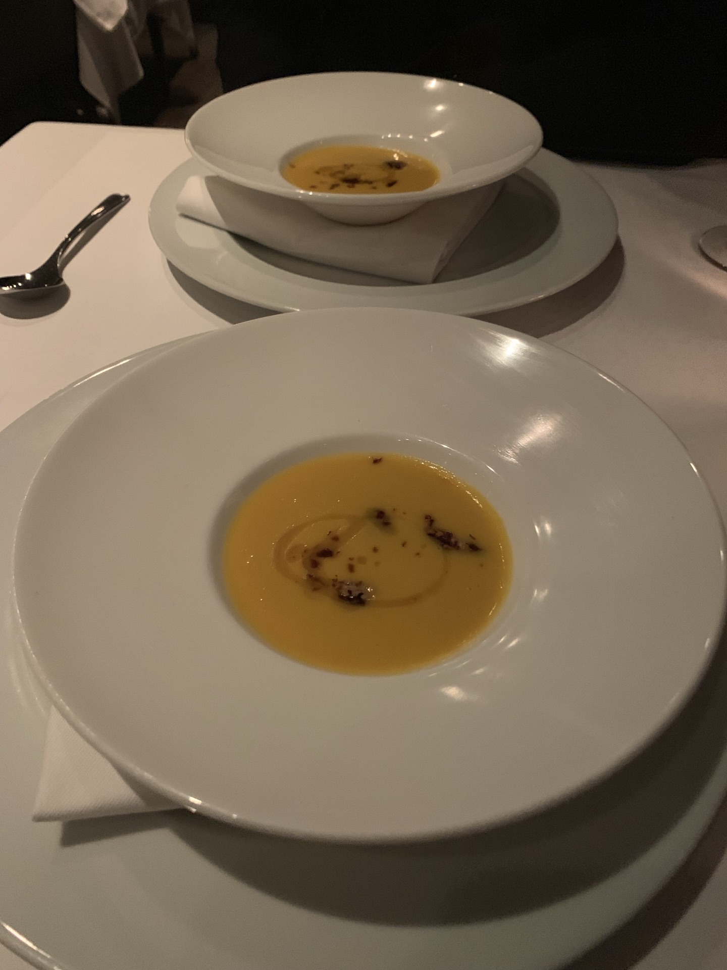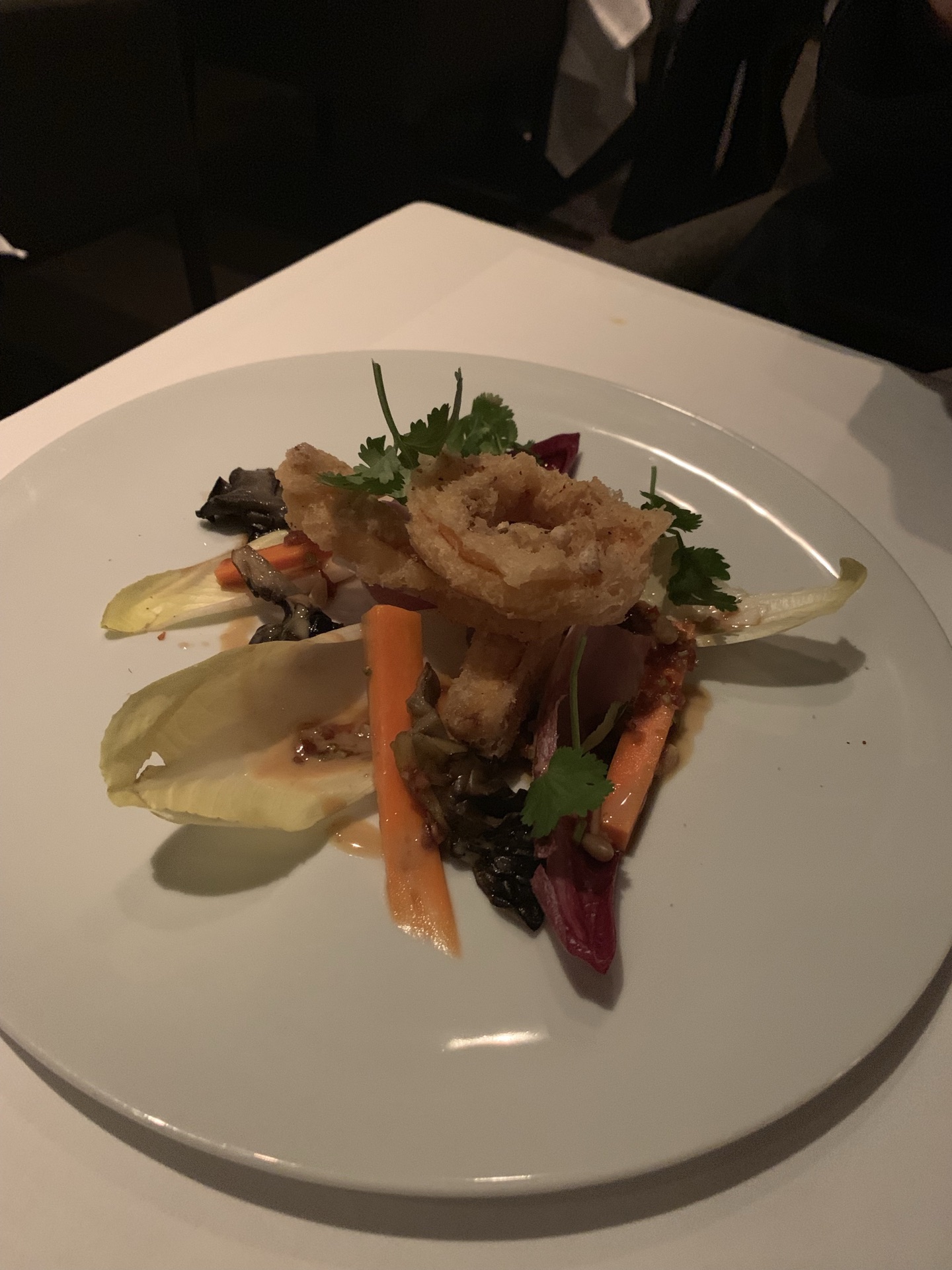 味道很不错的一个隐蔽餐厅,在一堆居民楼楼下,幸好有valet帮忙停车! 从餐厅里面可以看到CN塔还有城市,很神奇,因为这个地方是个地下,不在很高层,但也都能把美景尽收眼底。环境非常的暗,这是我去过光线最暗的餐厅之一,很适合穿一条美美的裙子!