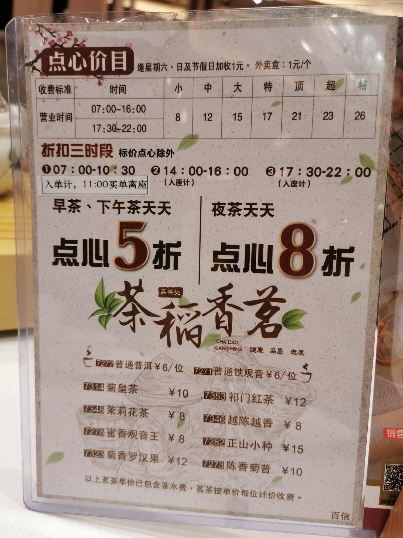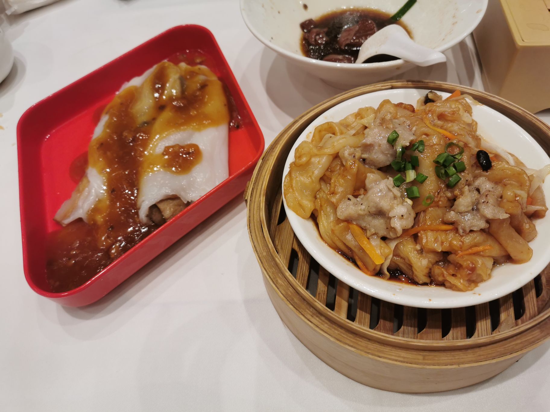 星期日下午去稻香饮茶,下午14点后入座算下午茶时间,除了菜单上标了价格的菜以外,其他所有点心都是五折 菠萝包、韭菜猪红都不错;野菌肠粉有两种酱,一个酱油一个鲍鱼汁,我们试了鲍鱼汁,没想到比酱油更配肠粉;还有一个很划算的是北菇滑鸡饭,看着标价小点,不知道会不会很小,于是就点来试试,其实是一人份的蒸饭,上面铺着滑鸡,这个价格值了