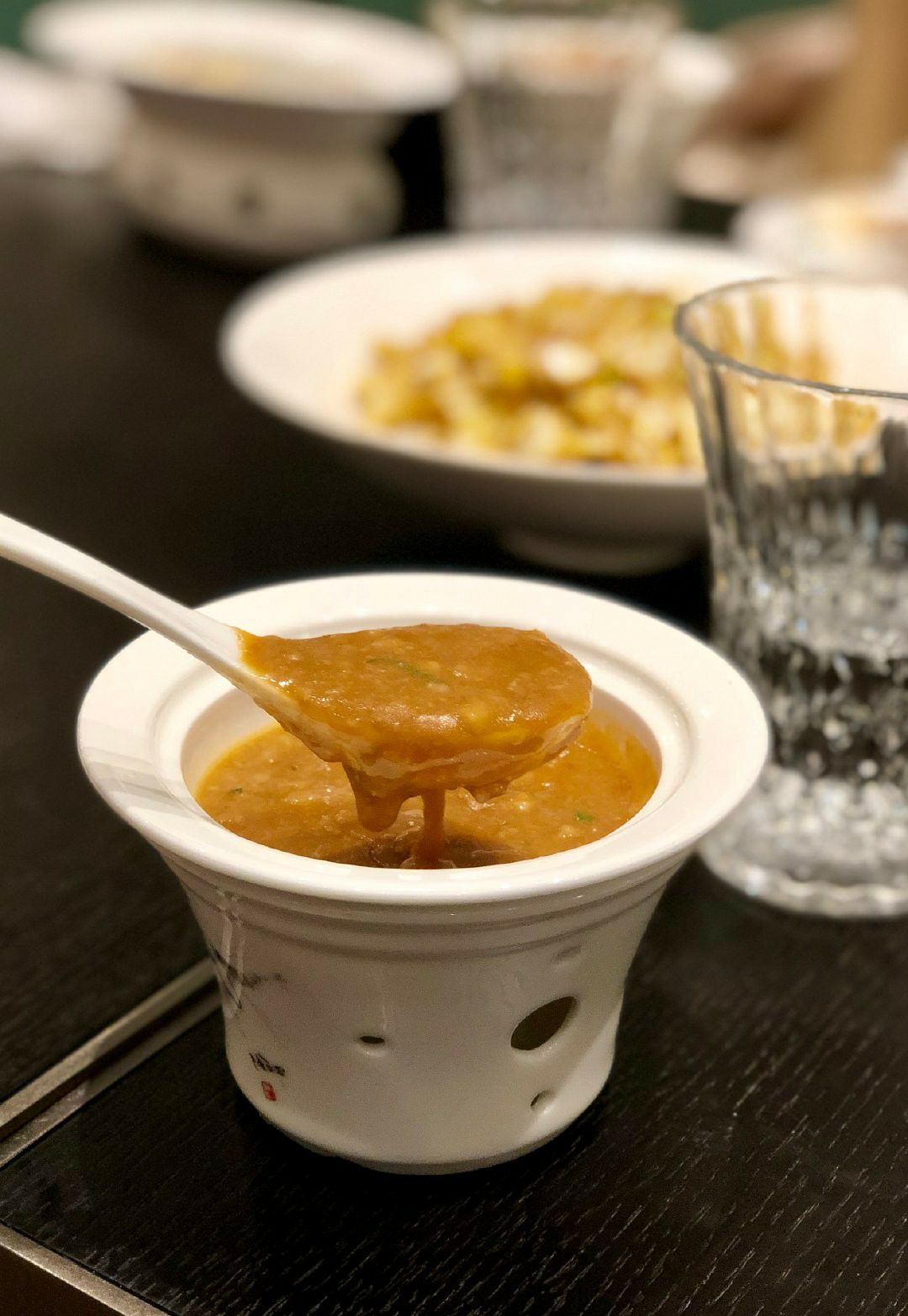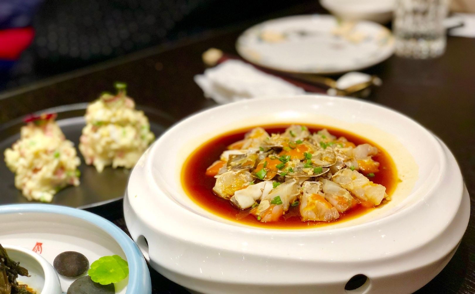 「手工宁波汤圆」 外皮软糯不粘牙赞爆不愧是宁波汤圆,黑芝麻馅儿油润但不失颗粒的口感,口中是意犹未尽的香甜。 「喷香芋艿羹」 最爱芋头了,咸口葱香的芋头羹还是第一次吃,鲜美无比,必点! 「白蟹酱炒年糕」 梭子蟹肥美宁波年糕丁沾满酱汁,非常Q弹好吃。 「招牌十八斩」 又一味鲜甜无比,这个季节舟山的红膏蟹还是如此肥美丰腴,入口即化调味和谐,鲜甜润滑,真的醉了,难得。 「黄金带鱼」 其实从小对带鱼就不太爱吃,但是这例东海带鱼打破了我对带鱼的成见,真的不是冷库出来的那种木木的口感,肉质非常雪白细腻,骨头炸到酥脆。 甬府小鲜·陆家嘴中心店