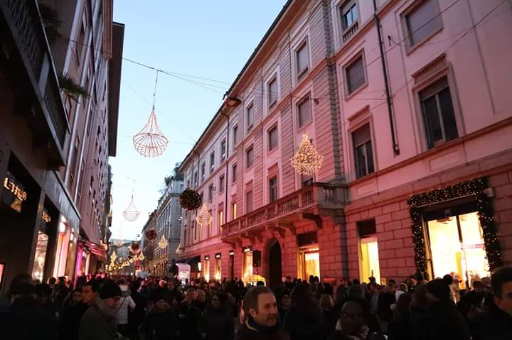 在圣诞假期折扣业非常大。曼佐尼街是米兰重要的商业街。里面遍布国际时尚和腕表大牌,简直目不暇接琳琅满目曼佐尼街是米兰重要的商业街。里面遍布国际时尚和腕表大牌,简直目不暇接琳琅满目。在圣诞假期折扣业非常大。虽然天气寒冷,也是人声鼎沸的感觉。