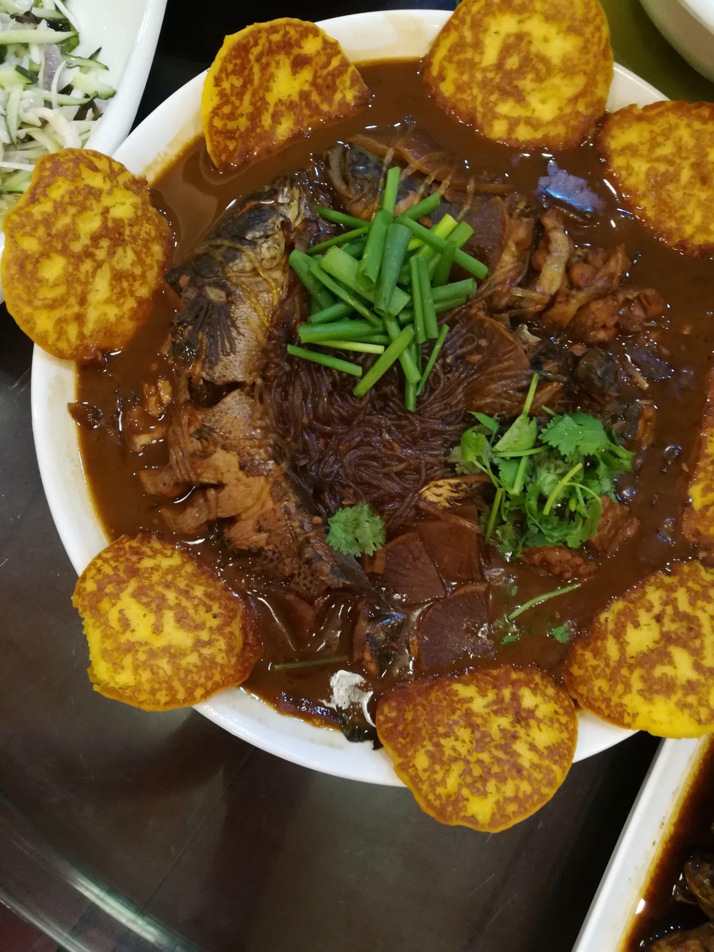 餐馆位于雄安新区的安新县,外表不起眼,里面却别有一番天地餐馆位于雄安新区的安新县,外表不起眼,里面却别有一番天地。离白洋淀湿地不远,菜式也是打着“荷塘”特色,有各种和荷叶,莲藕相关的菜品。老板人也大方,金黄色的玉米面做的小饼没吃够,又添了好几个。