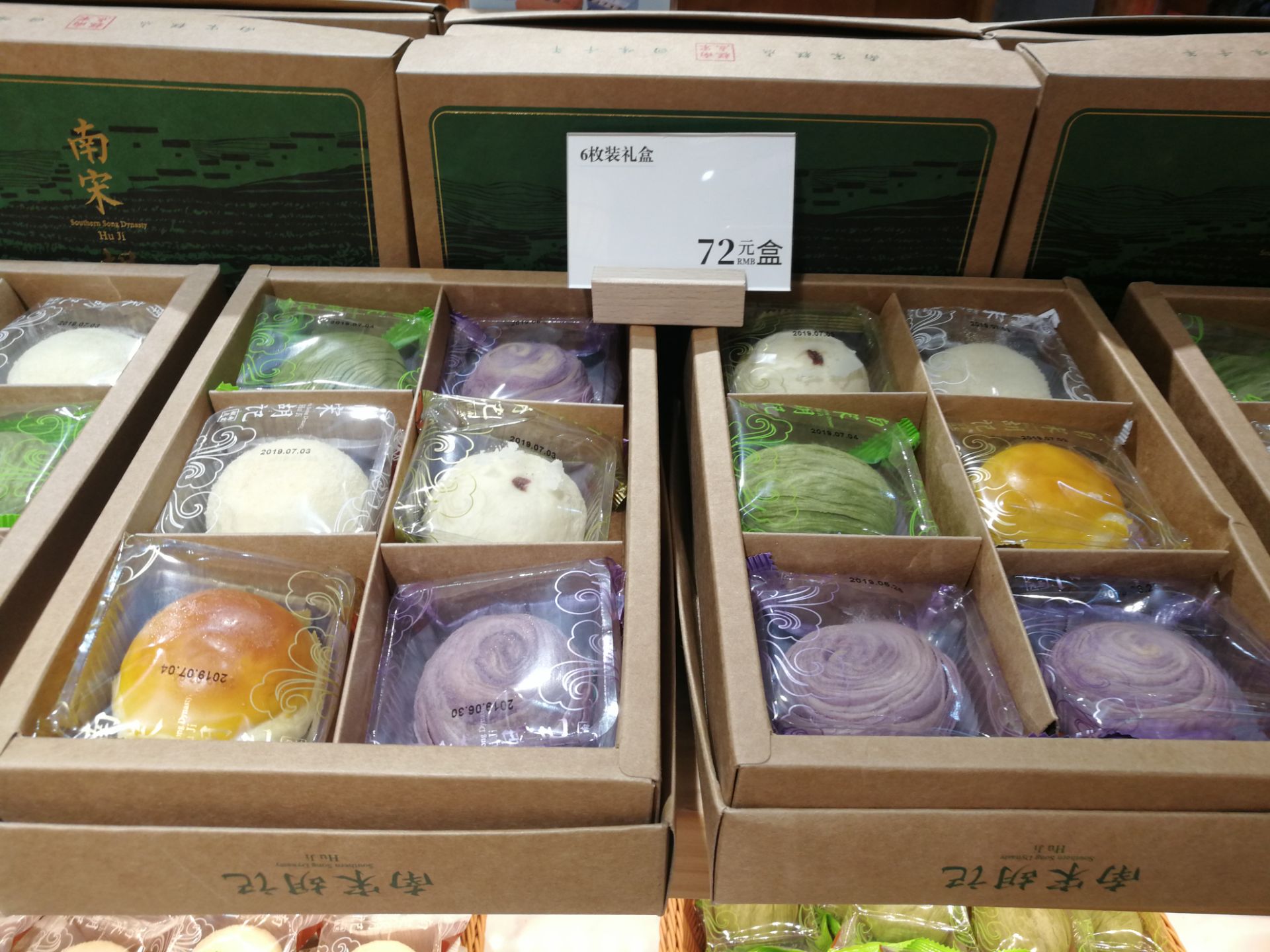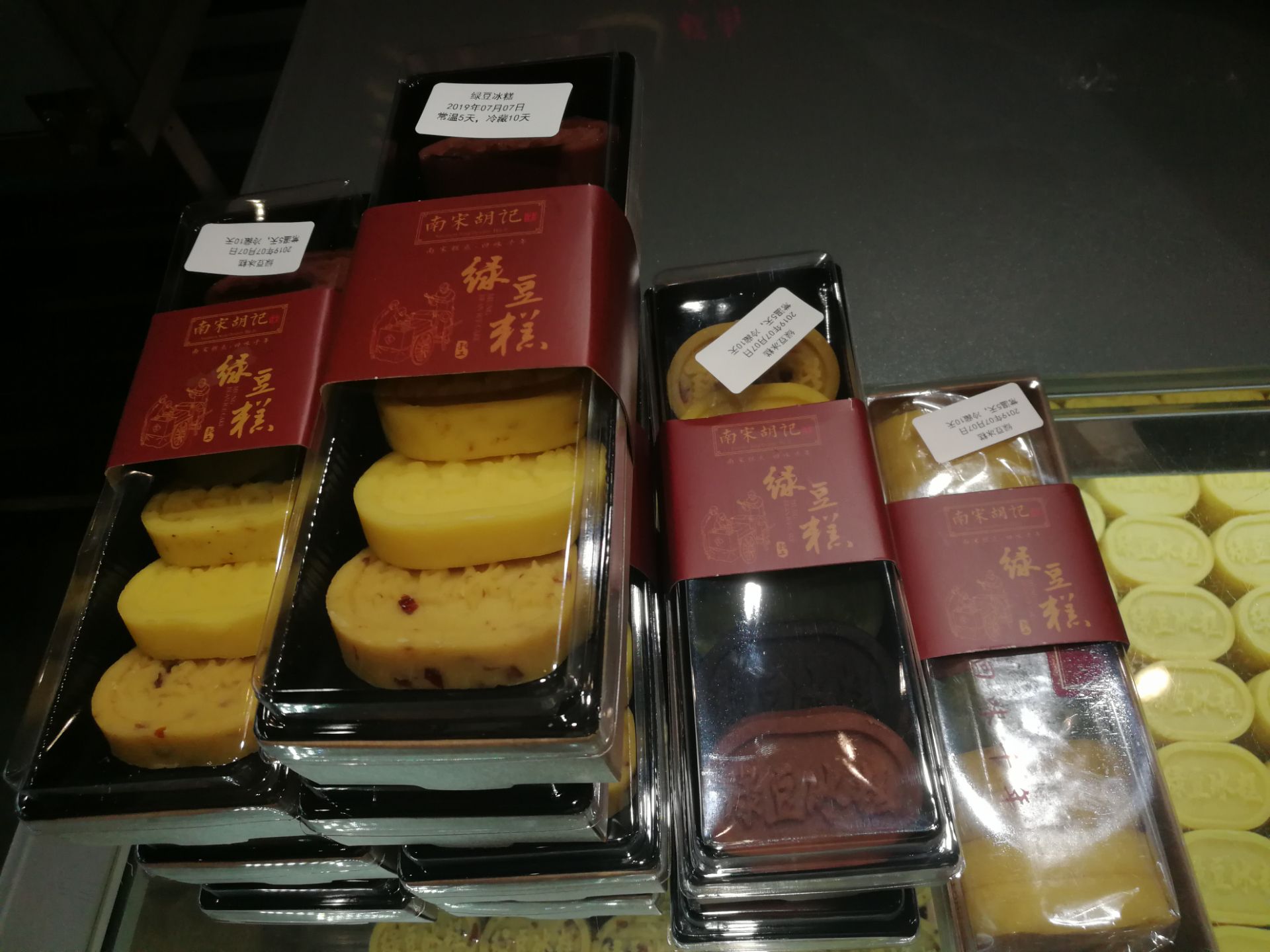 这两年来在市区频繁开店的“南宋胡记”,平时团购、打折的活动陆续不断,从最初的许仙饼、白娘子饼、小青饼等,到每年稳定出品的绿豆冰糕,再到后来媲美《舌尖》的荷花酥,每款都有不错的口碑! 去的是河坊街店,装修的古色古香,店员态度也很好,一直耐心的解答顾客的提问,并欢迎顾客去品尝台免费品尝冰糕和荷花酥呢!(很多商家或服务员会在这一环节对不太“识相”的顾客态度不好~~~~~) 绿豆冰糕有6款,口味分别是:原味、桂花味、蔓越莓味、绿茶味、红豆味、巧克力味。回家每种都切了一点尝了下,一圈吃下来,竟然感觉口味都差不多是什么情况? 倒是非常代表杭州特色的另一种“荷花酥”成功吸引了我的注意,虽然是两款完全不同的产品,口味也大同小异,但是不论从造型还是组合搭配上都更甚绿豆糕一筹!比如紫配黄的原味椰丝味、红配绿的抹茶椰蓉荷花酥、绿配紫的蓝莓芝士味、黄配粉的玫瑰奶酪味…… 荷花酥做成独立包装,不仅卫生,看着也很讲究~~~~~~单个12元的价格其实也不贵,讨喜的色彩和不错的口味,是外地游客座位伴手礼最好不过了!