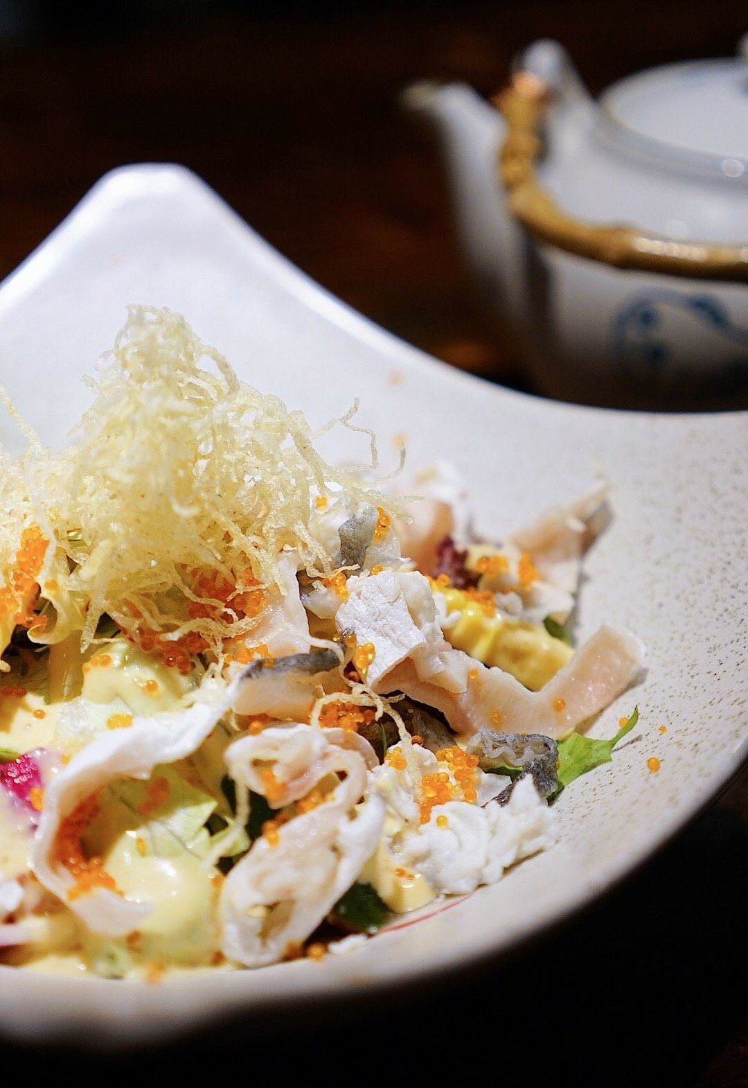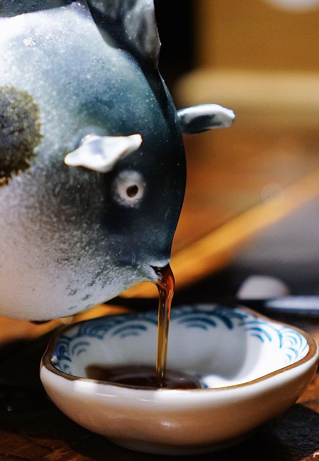 小河豚鱼状的壶中倾倒出微酸的调味醋,轻滚一圈蘸上,口感鲜嫩又有弹性
