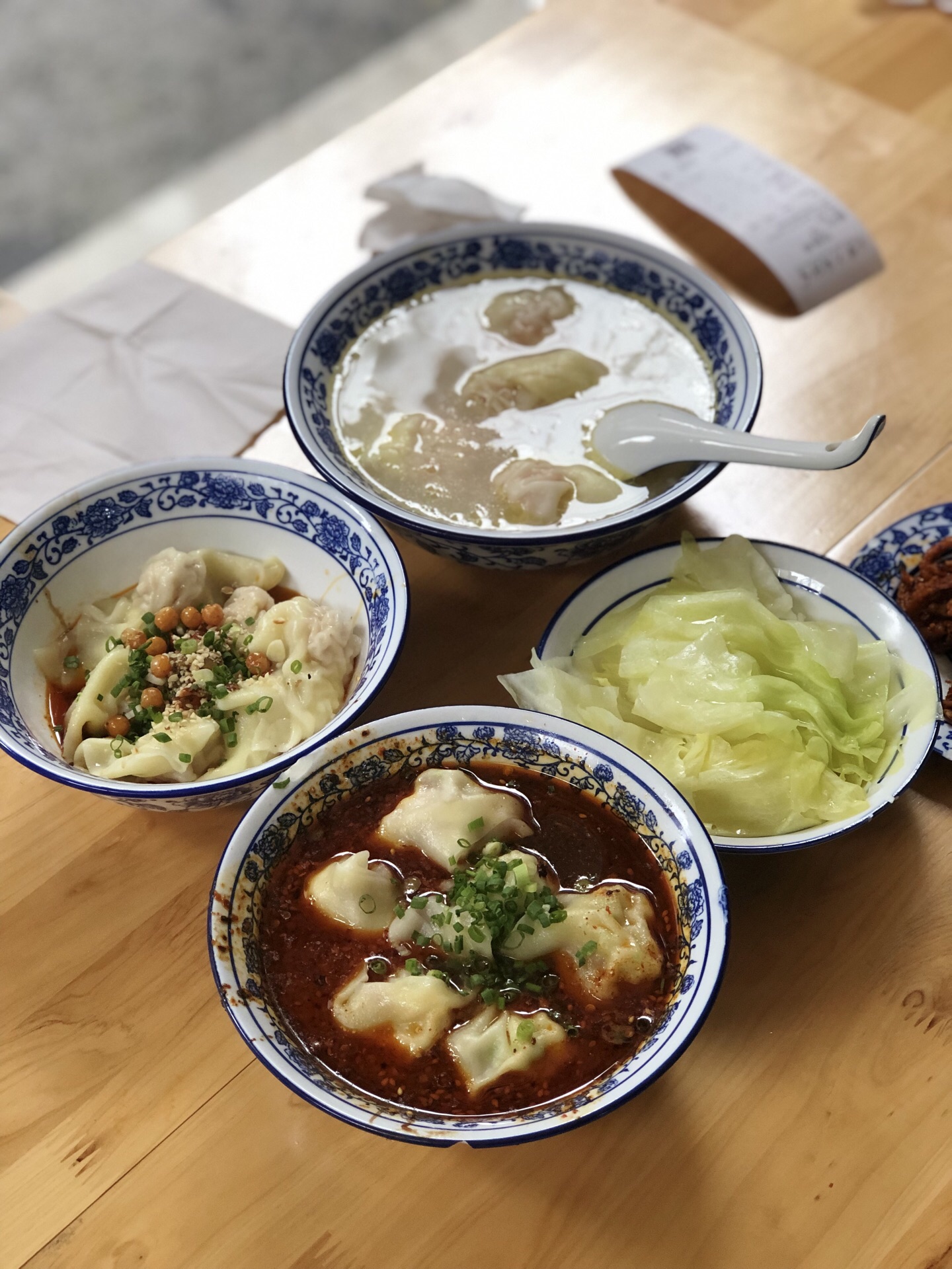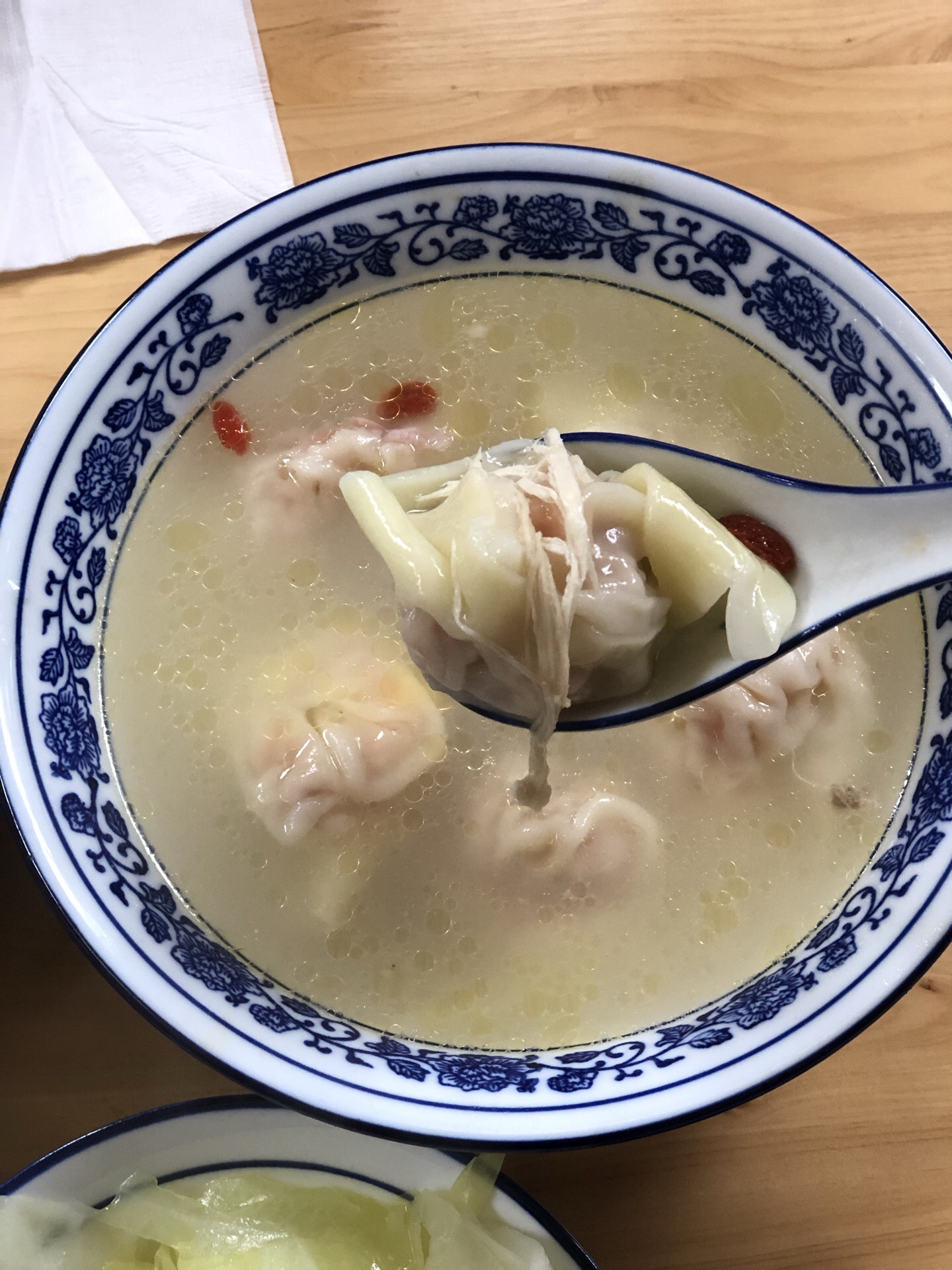 位于李家沱附近的一家抄手店 可以说走到巷口就已经能够感受到这家店人气很旺 [环境] 居民楼一楼,门口点餐 为了方便点餐,做了一些菜单放在收银台 也用了毛笔字写了一个大菜单放于墙上 细节很贴心。萝卜干,糖蒜都是自取 只要不浪费,想吃多少 目前店铺旁边的麻将室也可以就餐 [服务] 点餐的阿姨态度很好,点完餐会给一个号码牌 出餐后会喊号码,店员帮忙端过来 「剁椒抄手」 这个味道比较有创意,将传统剁椒茄子的手法用于了抄手,辣椒的味道渗透进抄手中 口感啦呼啦的。 「红汤芦笋抄手」 龙利鱼做成抄手的陷,这个真的有创意 比较适合小朋友吃,我猜想我们家小朋友肯定很喜欢。龙利鱼的肉质细嫩,在搭配芦笋的脆嫩。 美味美味,盖盖是爱了。 「鸡汤鲜虾蟹子抄手」 鸡丝看的见,加了枸杞,鸡汤里有枸杞的味道 鲜虾搭配蟹子,爆浆的口感 三碗的分量真的很足 点餐人性化,挺不错的