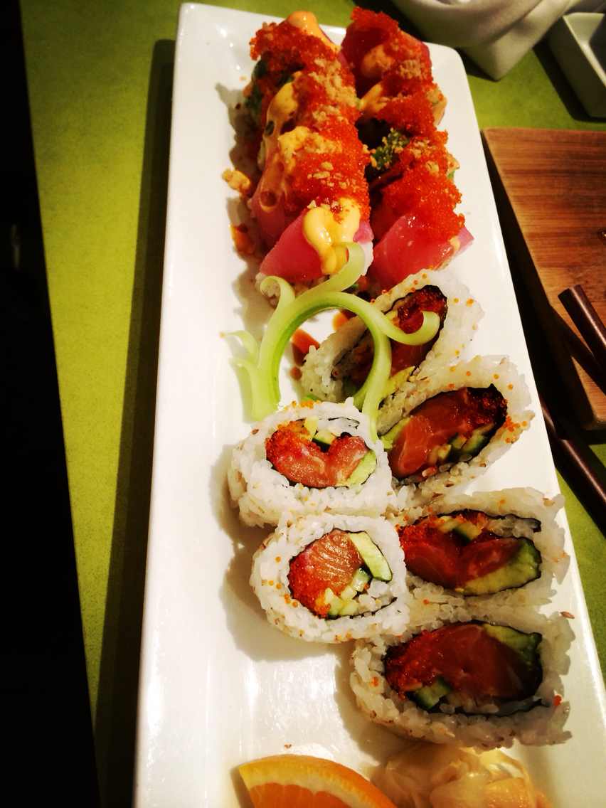 这家餐厅说是一家纯粹的日料店,我更加愿意把它定位成一家融合餐厅,因为它们家可不仅仅有日料餐厅常见的菜品,还有一些其他的西餐。所以选择面还是蛮广的。我们这次点了它们家的招牌寿司拼盘,肯定是不能少的,还点了香煎龙利鱼,这道菜特别好吃,煎的软硬适中,还有肉排里面放了番茄汁,酸酸甜甜的口感,真的超级的开胃。
