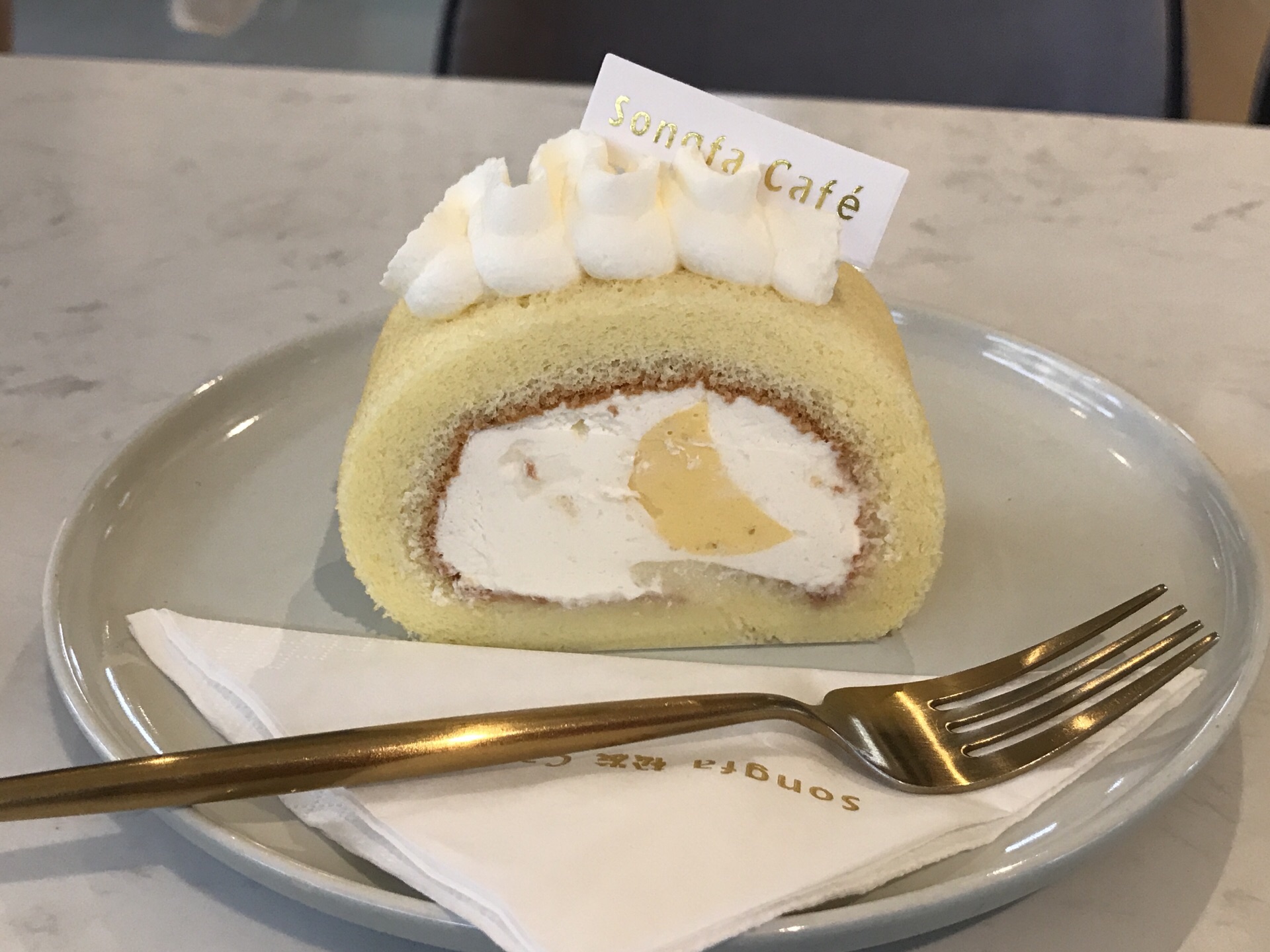 楼下是卖餐具的,在三楼的咖啡厅环境不错。 蛋糕卷是香蕉口味,奶油厚厚的,配搭咖啡还不错。好奇怪的天气