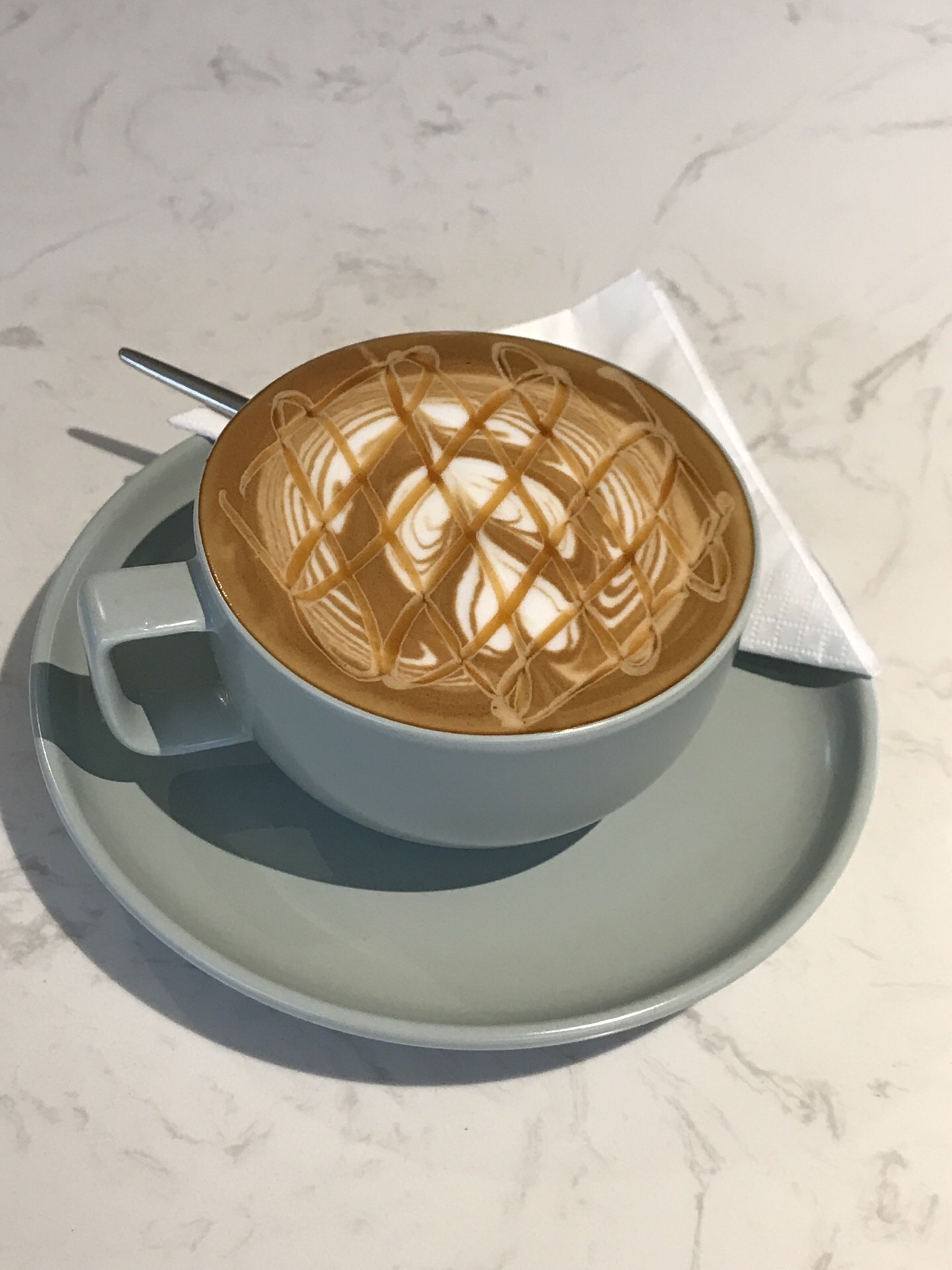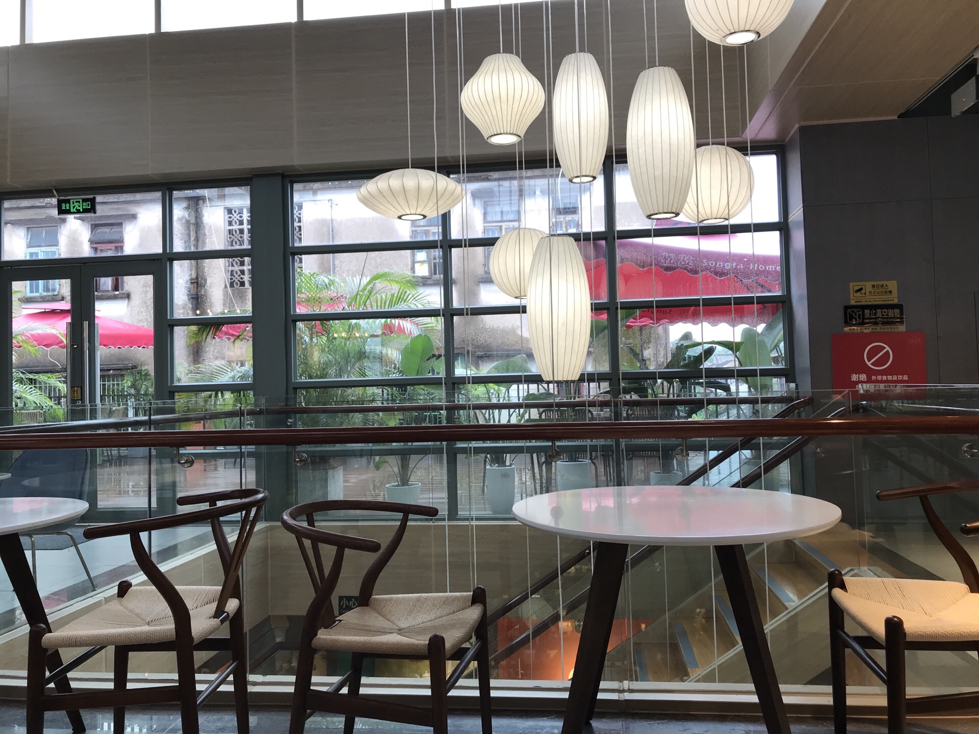 这天早上下了场大雨,停了之后又再下两次雨。好奇怪的天气。 下午出去遇到雨,就躲进这里喝咖啡。楼下是卖餐具的,在三楼的咖啡厅环境不错。买了优惠套餐,是一杯焦糖玛奇朵和一个蛋糕卷。 蛋糕卷是香蕉口味,奶油厚厚的,配搭咖啡还不错。