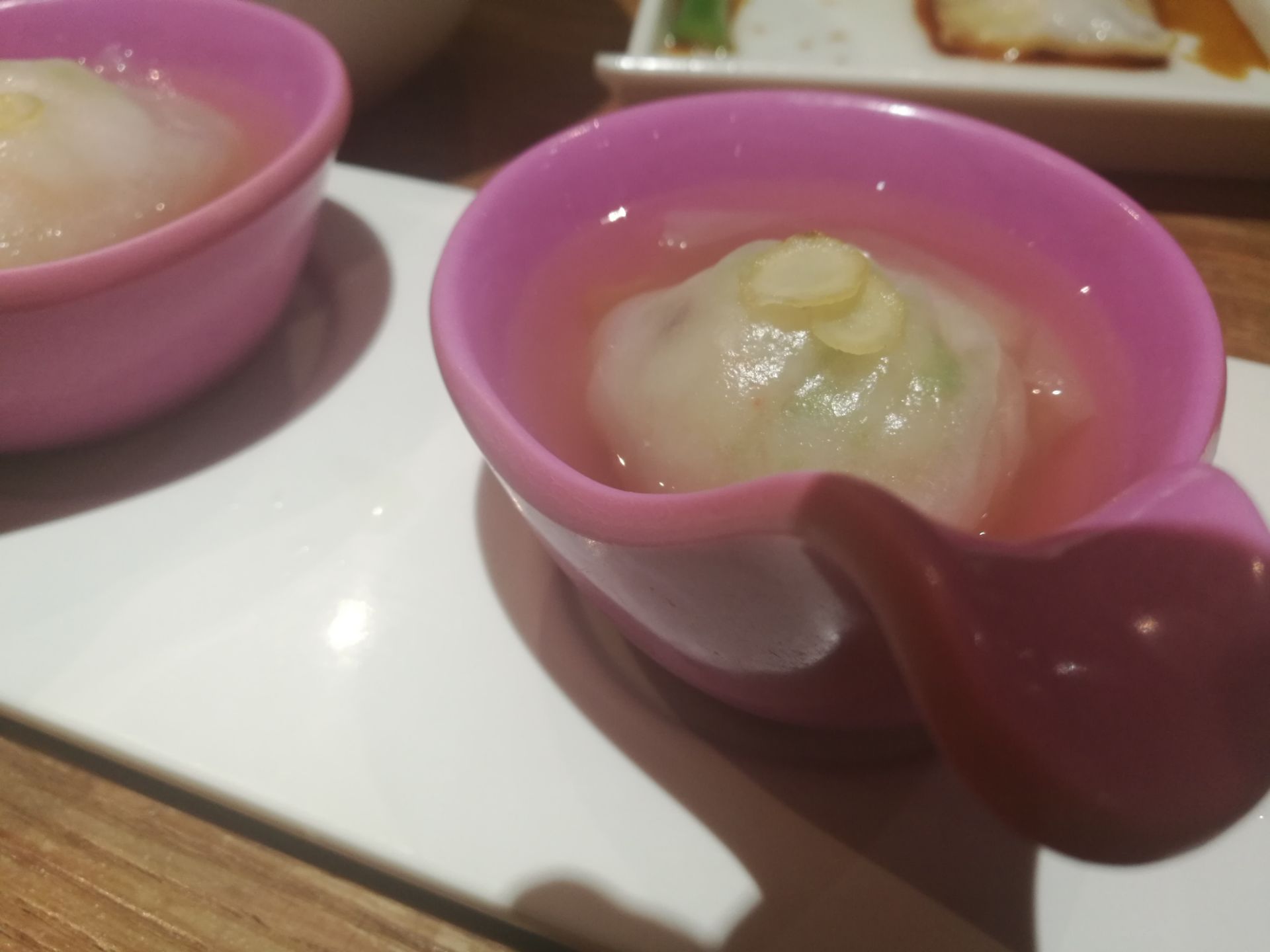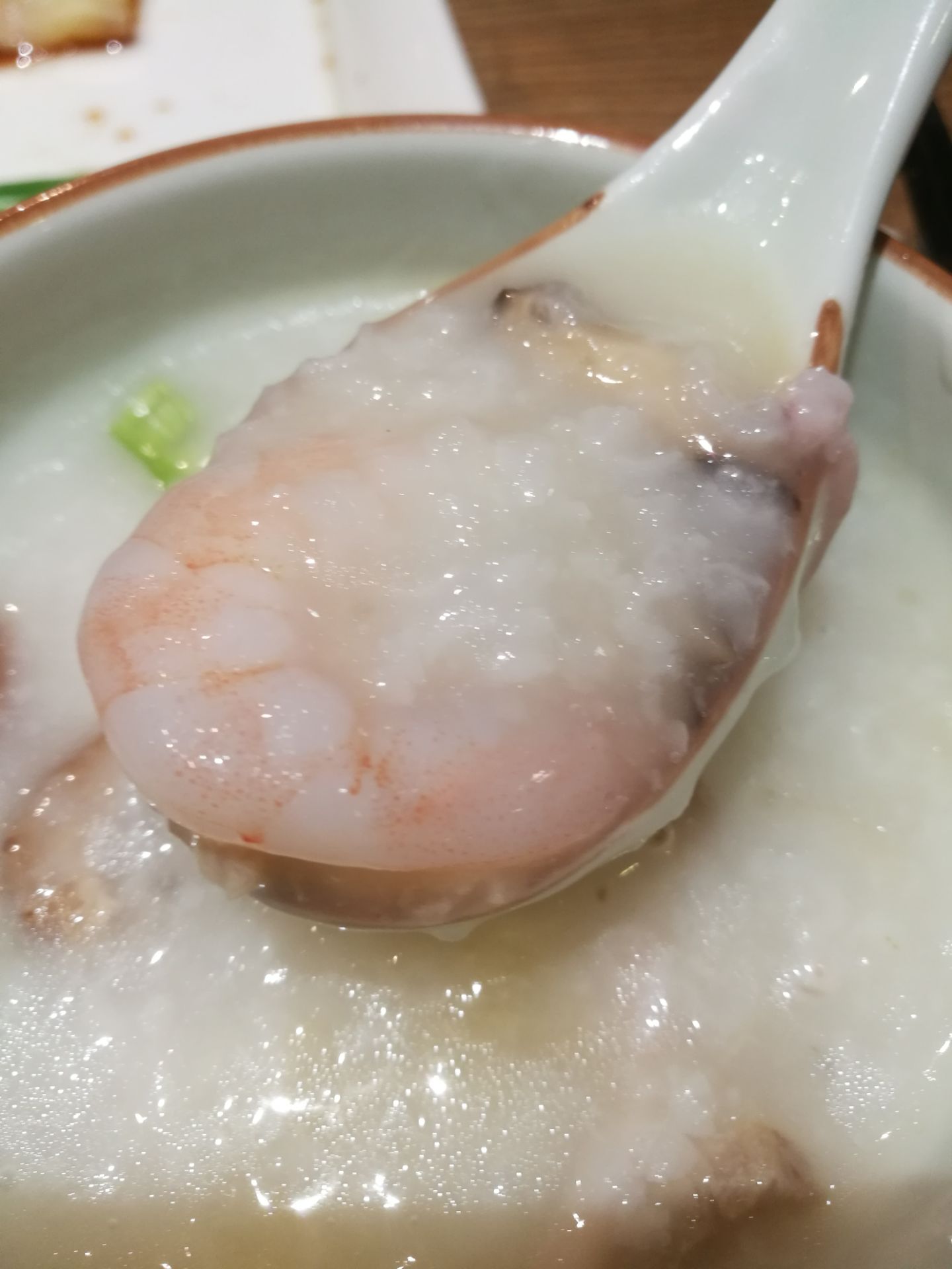 晚茶套餐:点了参汤虾饺、韭黄原只虾肠粉、艇仔粥。这三款都是以虾为主的点心,感觉肠粉拉得不错,很薄很滑,里面有很多原只大虾。艇仔粥很绵软。煎萝卜糕,不过不失。上汤菜心碟头够大很淋甜。萌萌的的椰香猪仔包造型好可爱。 这里的环境、出品、服务均不错。