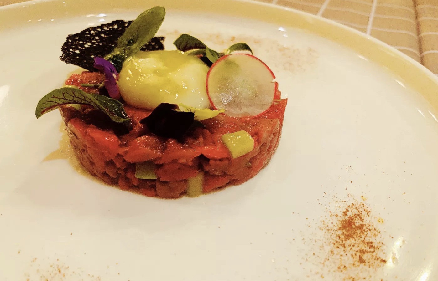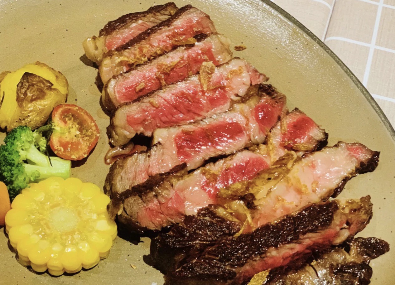 因为钟爱牛排 所以收藏了很多西餐牛排馆 这家Rina丽娜牛排馆在收藏夹躺了很久 终于有机会和闺蜜一起来拔草 整餐下来亮点颇多 印象尤为深刻的青口贝 鲜美多汁青口贝带着白葡萄酒的醇香 让人回味无穷 深海三文鱼意大利圣丹尼卷 咸鲜中带点脆脆的火腿片 包裹着肥美细腻的深海三文鱼 完全不同的口感层次感非常丰富 美美仙仙的鹅肝慕司芒果冻 来自西西里岛创意的混合香草盐焗比目鱼 口感惊艳的和牛塔塔 …… 终于等到我的M5澳洲和牛肉眼 天知道我有多爱肉眼 上桌散发着浓浓的油脂香气 五分熟的牛排内里还是鲜嫩的粉红色 带着丝丝的肌红蛋白汁水 一口咬下去 纯厚柔嫩肉汁满溢 瘦肉的鲜香和脂膏的浓香在舌尖一同化开 顿时幸福感爆棚 西餐讲究环境、摆盘和食物搭配 当然还要和对的人 愉快地聊天 轻松地小酌 没有比这更美妙的事了