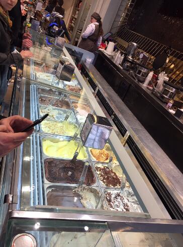 ...选择蛋筒的大小,是否要在蛋筒上加巧克力蘸椰丝或者坚果什么的,然后选择想要几个冰淇淋球,至少两个店面挺大,分两部分,左边是巧克力的货架,右边则是冰淇淋。点单时,选择蛋筒的大小,是否要在蛋筒上加巧克力蘸椰丝或者坚果什么的,然后选择想要几个冰淇淋球,至少两个。