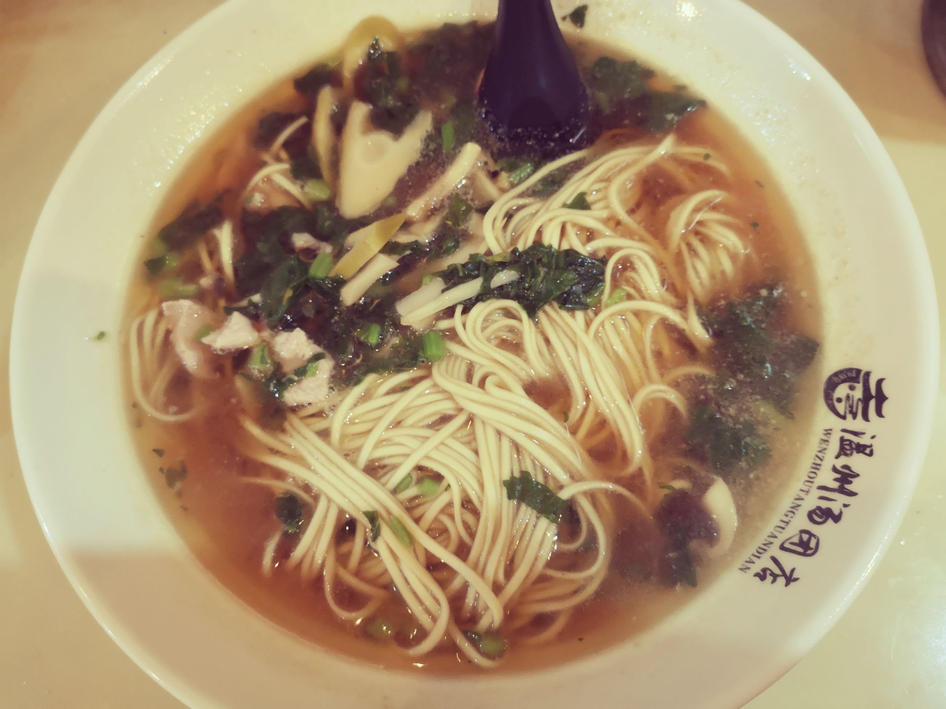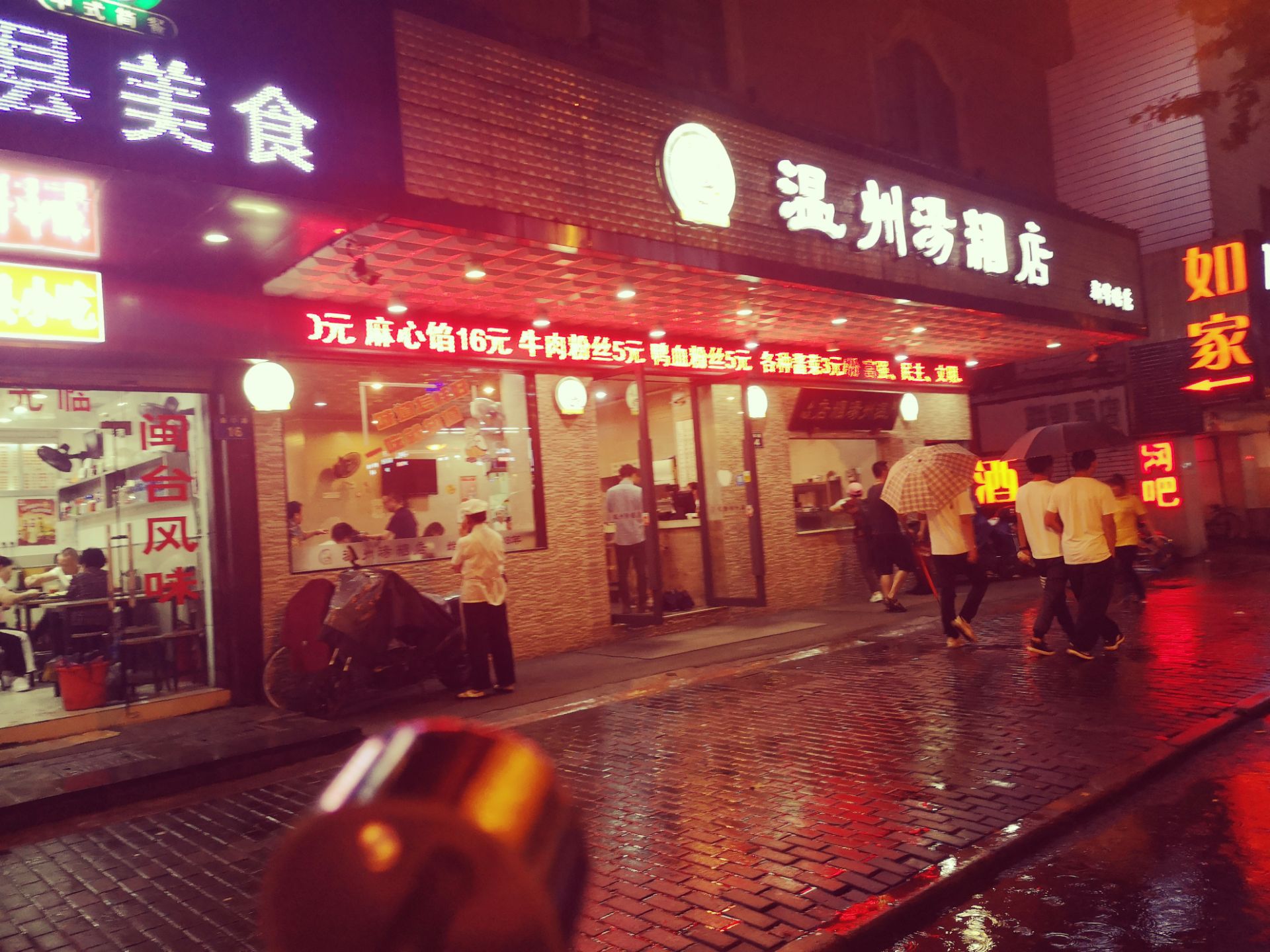 温州汤团店,新华路14号,杭州为数不多超过20年以上的老字号。周边的居民从从自己是孩子吃到自己有孩子,从带儿子吃到带孙子吃,从黑发吃到白头,吃出一段无以复制的记忆,一种无可取代的情怀。温州汤团店,坚守新华路20余年,民生百态,世事变迁,它都无一例外,亲眼见证,是默默陪伴。它,已然是一个路标,一个老邻居。 [环境]夜色深沉,大雨倾盆,店里任然灯火通明,人生鼎沸,杭州话闲聊家长里短,时事新闻,老底子杭州人最真实的生活展现。 [服务]服务员阿姨几年下来,脸都再熟悉不过了。老字号的服务态度基本是“不客气”的,或许也是一种习以为常的特色。 |片儿川面^一碗份量超足的片儿川,绿油油的雪菜、鲜嫩的薄薄的肉片,笋干,纤细的碱面,丰富配料渗透入汤中,汤头鲜美,如同老邻居家的厨艺,不经意随手一烧,熟悉的味道里满是岁月的沉淀。 温州汤团店,一碗持之以恒的片儿川,陪我走过青葱岁月,大好年华。别无他求,但求从黑发吃到白头!