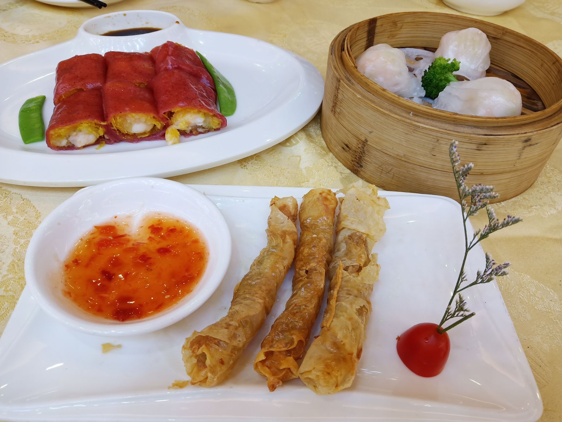 虾饺是妈妈的至爱,每次带她去都会点的,皮薄馅多(里面有4只虾哦)。 泰汁腐皮卷则是妈妈的另一至爱,它与别家不同(别家都是炆的),它是炸的,且炸的十分酥脆,里面的肉馅很嫩滑,再点上那个酸酸甜甜的酱,口感就更丰富了,但又不会腻,与夏天是绝配呵。 不过这里的服务就一般般,但这里消费不高,早上10时前结帐可以68折,这个价位是普罗大众都可以接受的。