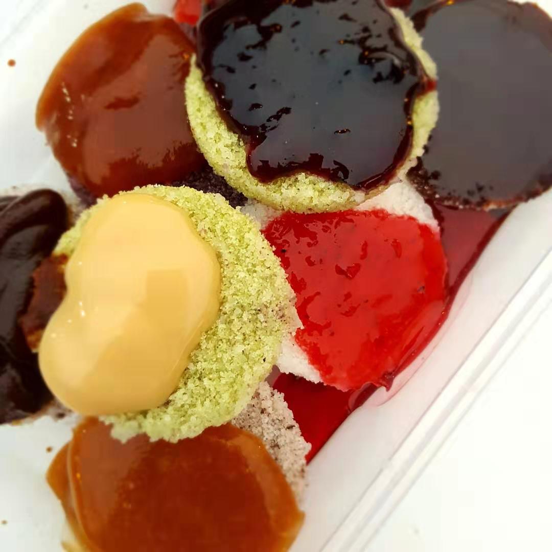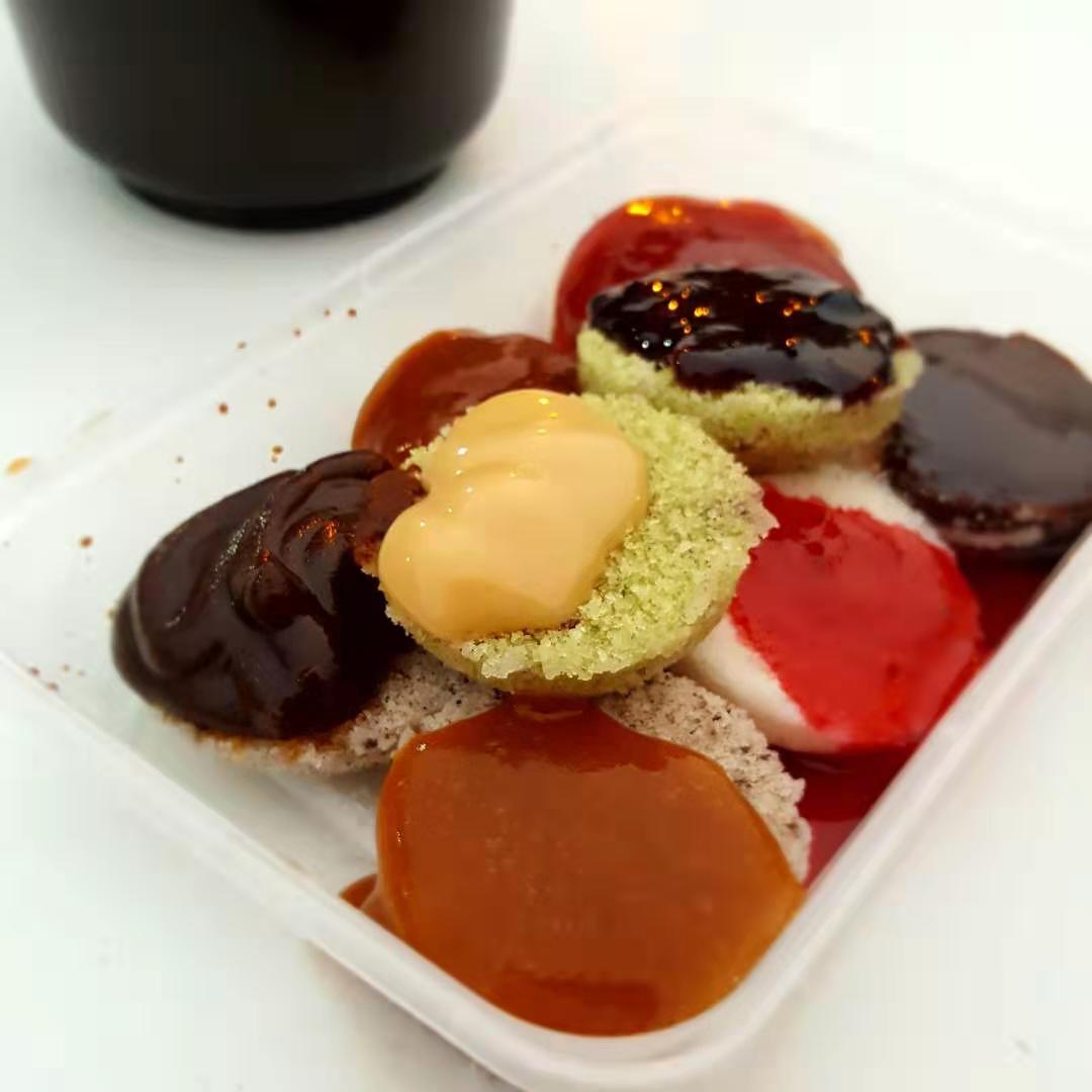 嗡儿嗡儿嗡儿,这是熟梨糕的声音 店名:秀泽熟梨糕(总店) 地址:河北区中山美食街内 人均:20 饼底除了传统的白面还有紫米面和抹茶面,米饼温润可口,不干不宣,入口香甜。蒸熟的饼底整齐的排放在一起,阵阵的米香扑鼻而来。 酱料选择很多除了传统的白糖、红糖、酸磨糕,现在增添了各种水果口味,津味杏脯、津味果脯、酸磨糕、蓝莓芝士、麦乳精都是必加的酱料。 酸磨糕还是小时候的味道! 嗜甜千万不要错过麦乳精! 巧克力是正经的巧克力酱味道! 猕猴桃里面还有小的猕猴桃颗粒! 来一盒熟梨糕来一碗茶面,坐下来品味正宗天津味儿! 搅拌均匀的糜子面上撒上红糖,青红丝,京糕条,葡萄干等搅拌在一起,趁热乎吸溜上一楼,酸甜可口!