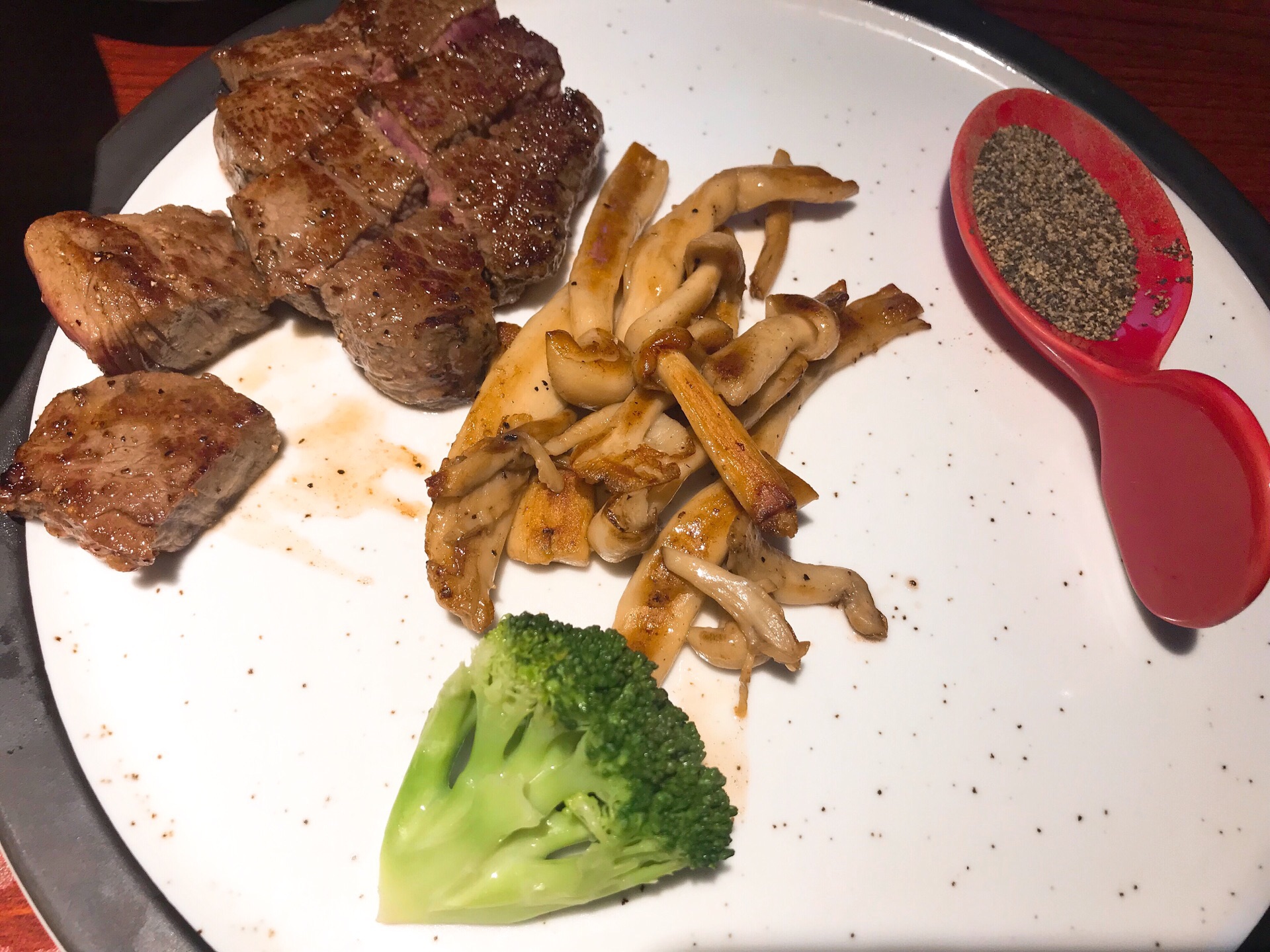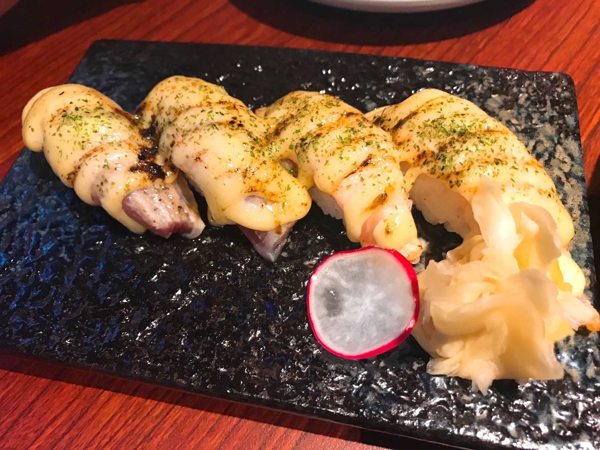 我想说吃完的感受是:味道真的不错! 看到菜单,发现都想吃,然后点了很多寿司,点了刺身拼盘,寿喜锅,牛排等,吃下来觉得味道还是挺好的,而且性价比蛮高的。 首先两个人吃刺身拼盘的话点5种就够了,有三文鱼,三文鱼腩,金枪鱼,北极贝,甜虾,带子,非常丰富。 寿司点了炙烤和手握,还有焦糖和鳗鱼手握的,美味。 铁板烧推荐厚烧牛舌,配上秘制酱料,牛舌口感超级好。菲力牛排的话虽然不是很大,但是烤的很鲜嫩多汁。 肥牛寿喜锅的量也很足够哦,肥牛很大一份,里面的配菜也很足。 对了,还点了一份百香果布丁,不是餐后甜点,是餐前享用的,服务员说餐前用来开胃的,小小一个,酸酸甜甜