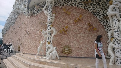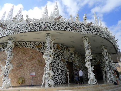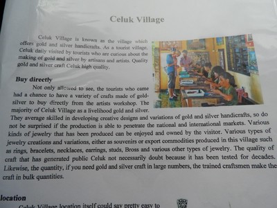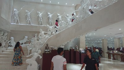 无门票【参观时间】15分钟-1小时 建筑蛮有意思的,照相出来也好看,加工工厂是开放式的,你可以直接站在工匠边上观看一件饰品的加工,另外所有银器珠宝全部敞开放,闪亮一屋子,你可以直接拿起来试戴,没有什么推销人员。 【缘起】虽然我是自由行,但包车来的银器村,被引到了和跟团游一样的购物点来了。本来想的是淘些银饰品,最后什么也没买到。 【环境】村口很醒目,都是白色雕塑,跟别处很不同。进来一条小巷,就到展区,也是购物区。购物区挺大的,很多银摆件之类的,但不能拍照。价格让我没有购物的欲望,就看了一圈。反而是屋外有不少像半成品的雕塑,被我来了一组模仿秀。