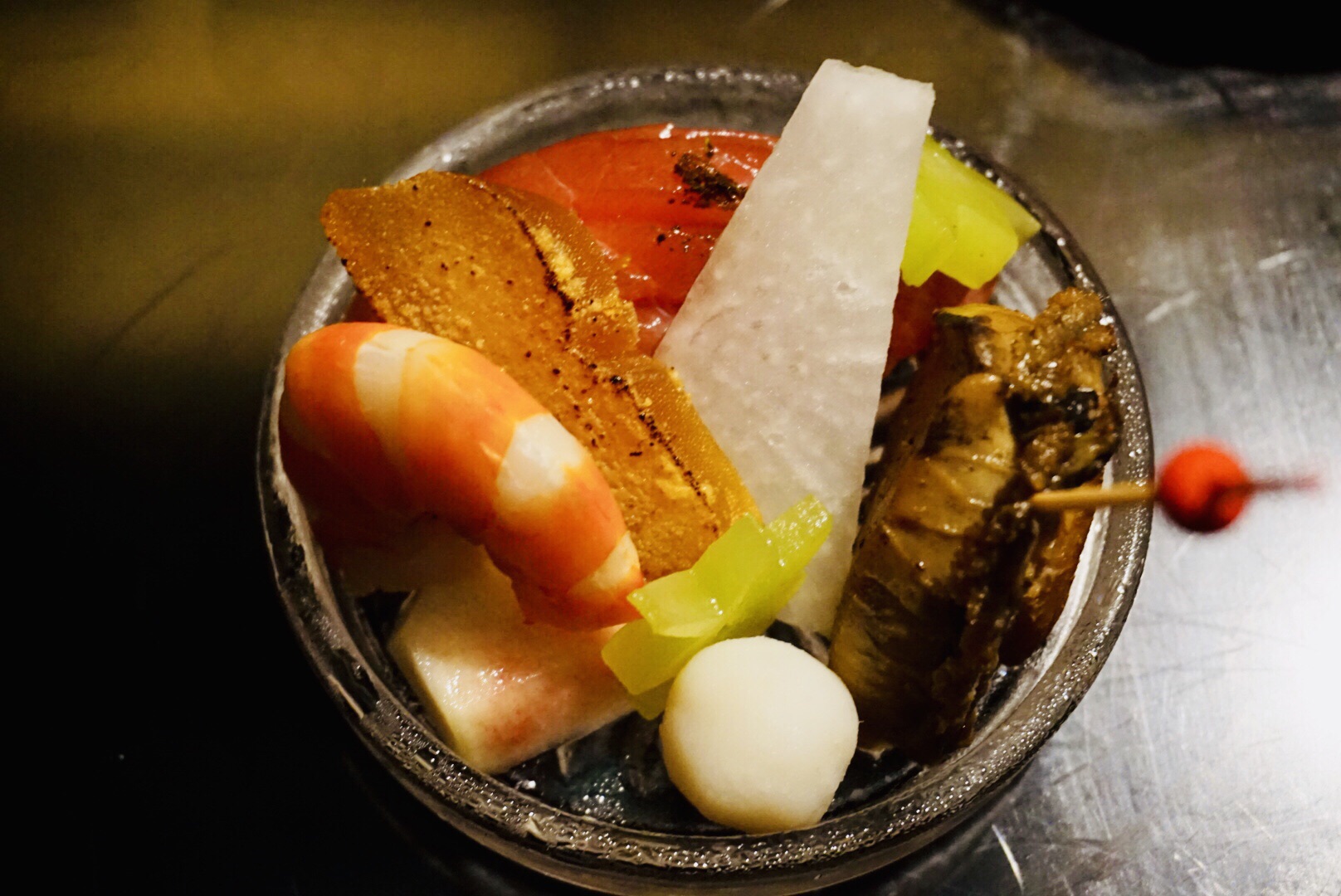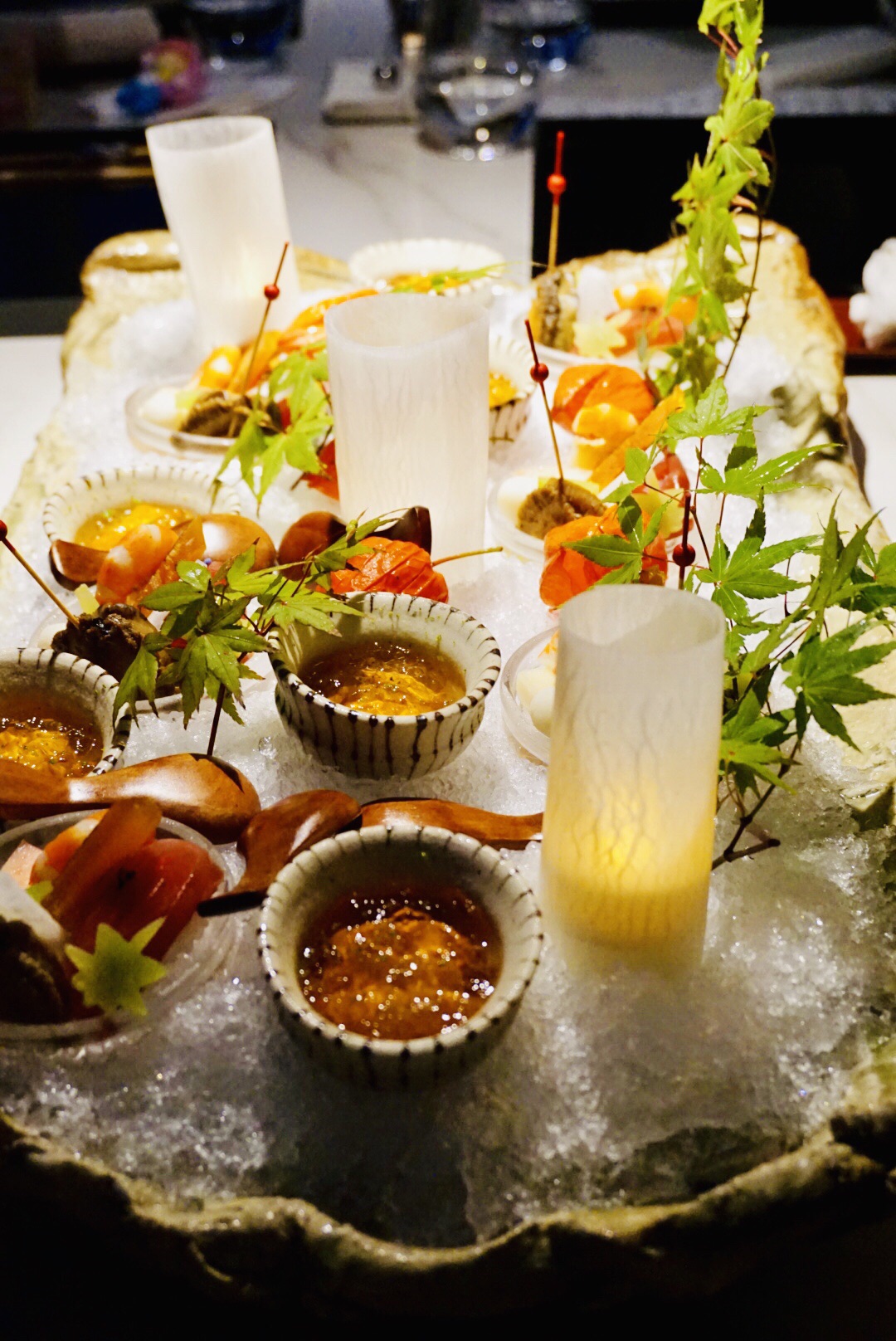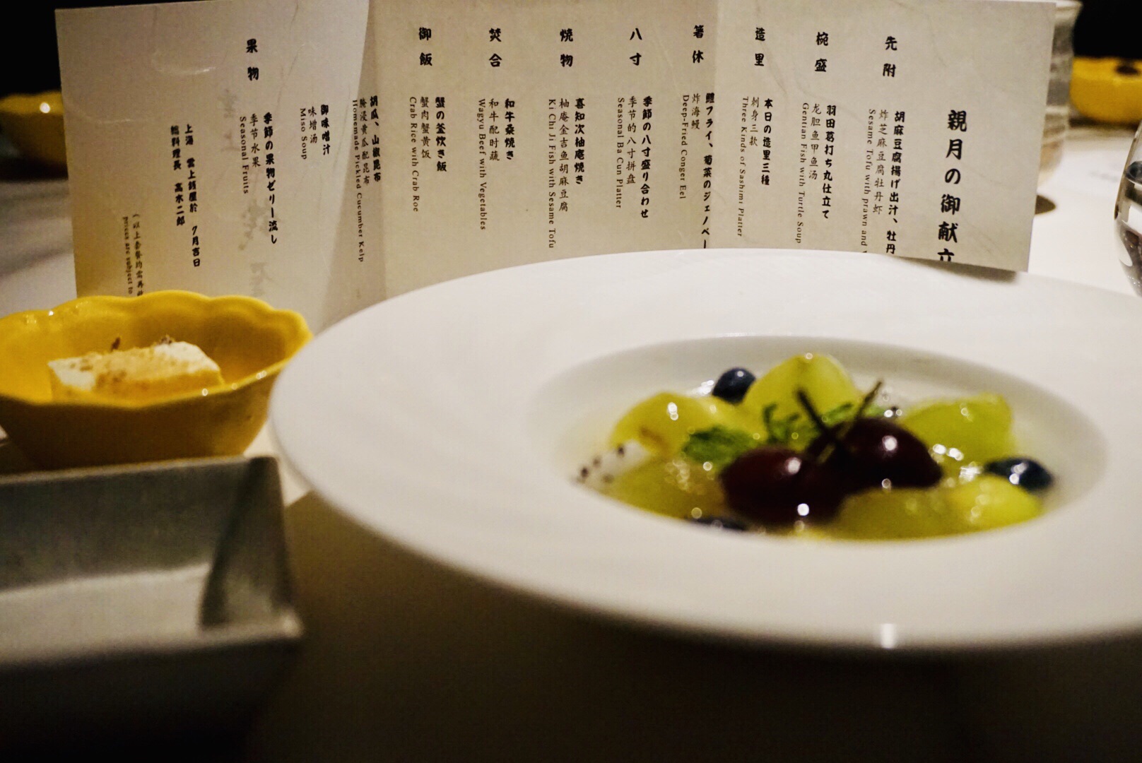 第一个 欢迎茶 紫苏米果茶 清清爽爽打开味蕾 解开怀石料理序幕 来一杯开餐酒 美人酒喝完都是美人 漆器酒盏举杯开始 大明虾芝麻豆腐 配上柚子醋 龙胆甲鱼汤 汤清口 这个金漆的碗大有来头哟 刺身三款 蓝鳍金枪鱼大脂 北极贝 红石斑 最爱大脂 松露鳗鱼 松露好香 最爱呀 季节八寸拼盘 最爱乌鱼子 柚庵喉黑鱼 第一次吃 嘻嘻 和牛配时蔬 澳洲M9就是不一样 配菜芋头都那么好吃 蟹肉蟹黄饭 人家是红毛蟹手工拆出来的饭哟 腌浸黄瓜配昆布 味增汤 过饭正好 季节水果 摆盘精致 完美一餐 希望能在这里邂逅爱情 坐着看着夜景 人生多美满 其实一切都是最好的安排 总有意外在等你 保持微笑幸福就会来临