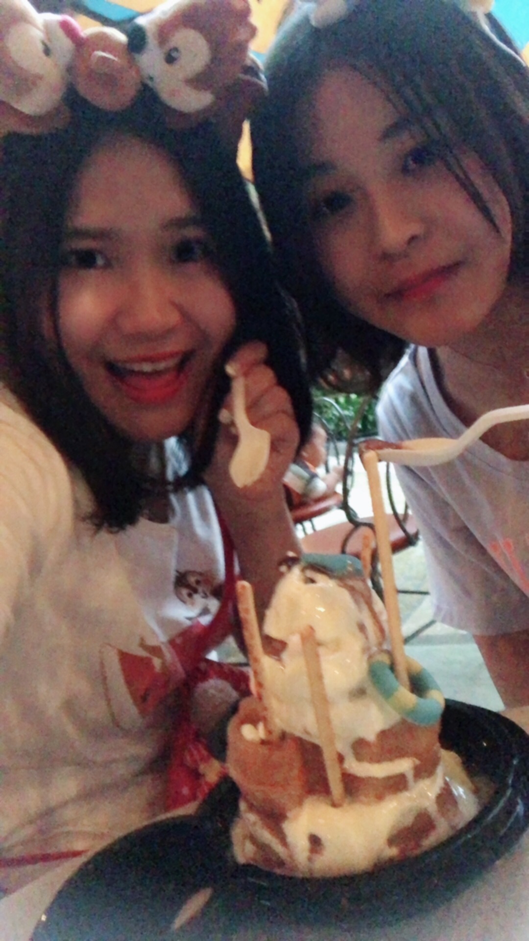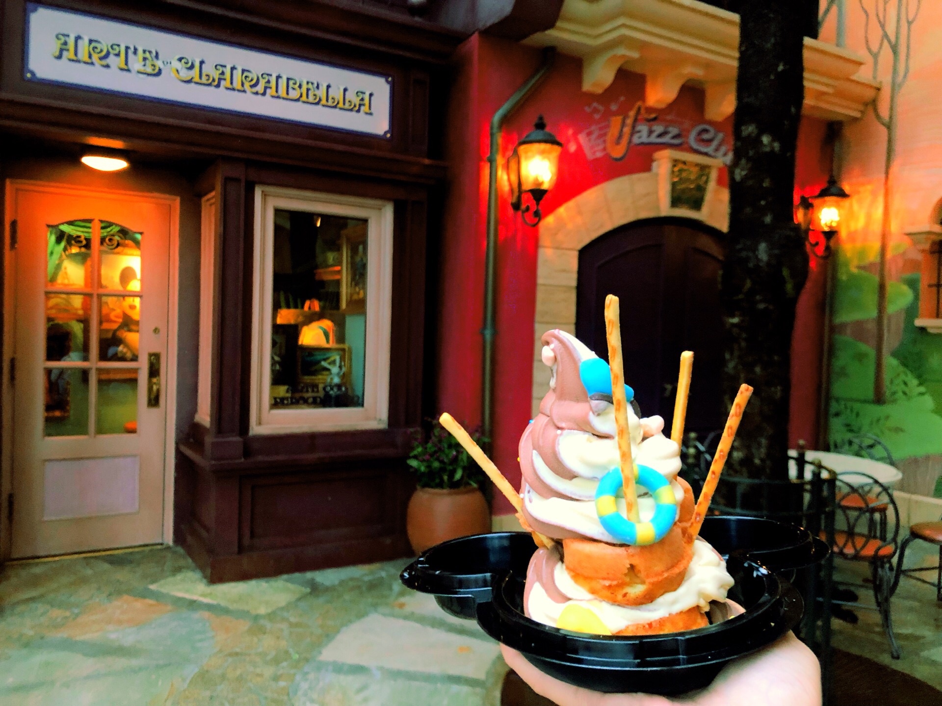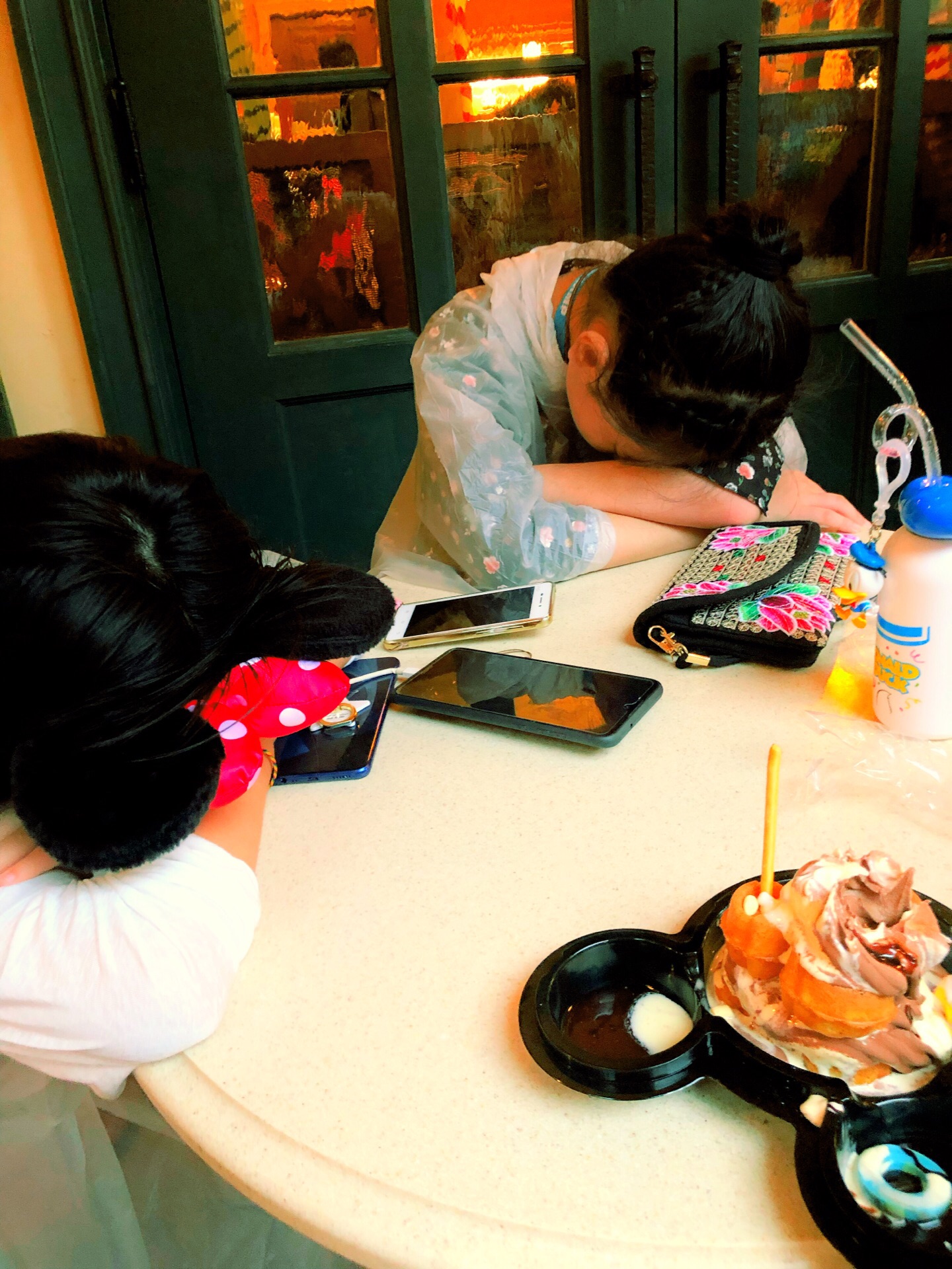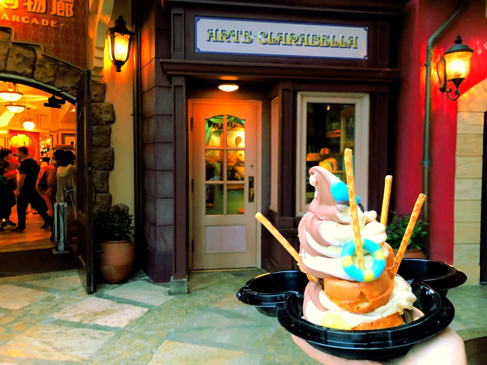 大概来吃了第八次?第九次?不记得了… 唐老鸭华夫来一发~香草口味冰淇淋一如既往好吃,华夫口感也是刚刚好。 可惜那天下雨,不能边走边吃,无奈只能找座位坐。 这里的座位被不是来帕帕里诺消费的游客霸占了! 图七的两个女孩,就在这里睡着了!睡醒看了我和我表妹一眼继续睡!可怜的我们只能缩在角落里吃! 来这里吃冰淇淋的,谁不是被冰淇淋的造型和颜值征服的呢?谁不想拍出好看的照片?占着茅坑不拉屎的人真讨厌!要不是那天心情好,真的就要泼妇本性暴露了…
