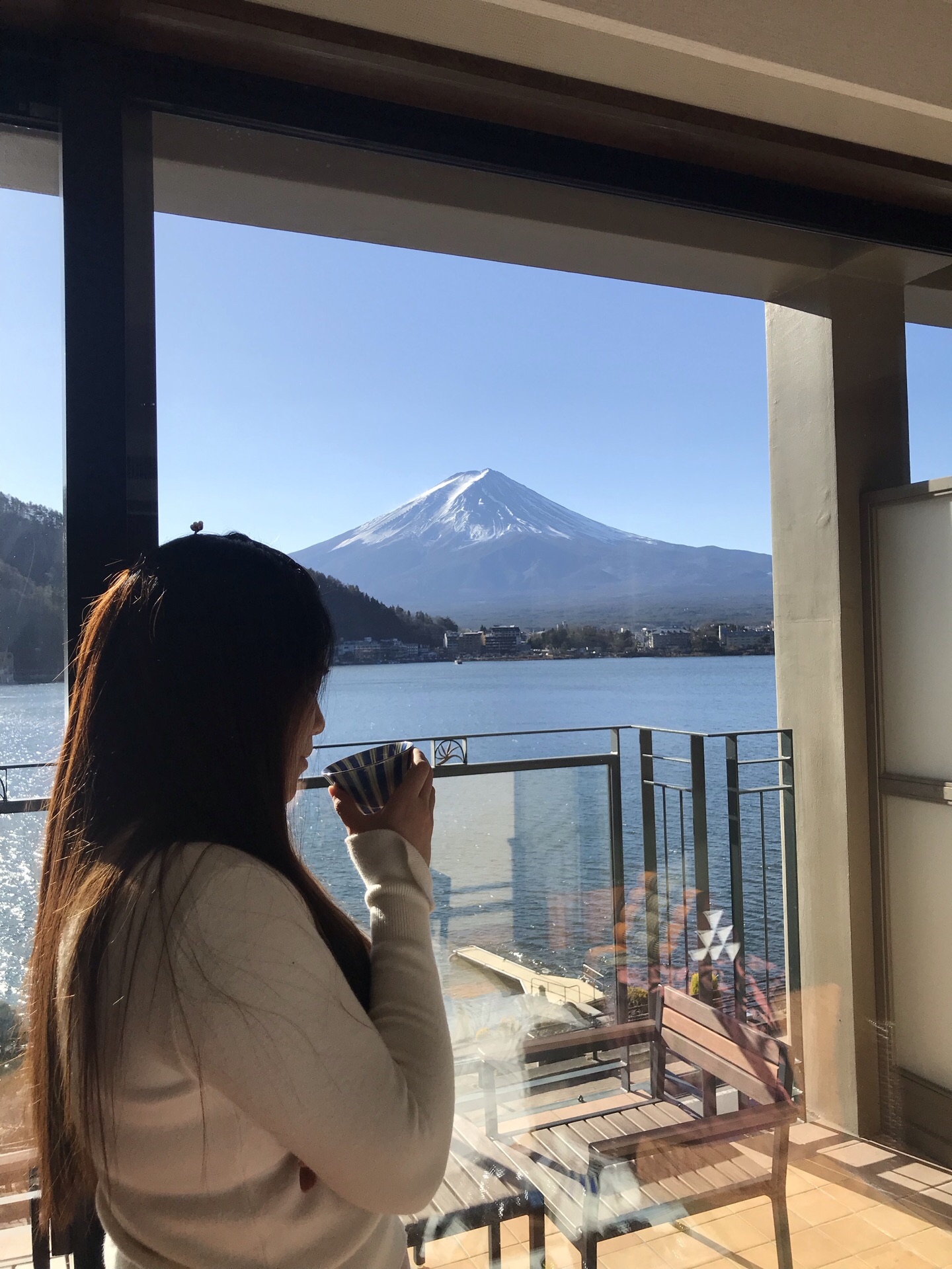 河口湖真的是一个不可错过的风景! 可以欣赏到富士山的全景,配合湖,山水结合,十分壮观。 这边有生活区,吃饭什么的都挺方便,也会有很多便利店。住酒店民宿,丰俭由人。 住的kukuna,真的好赞,顶层是全天24小时的温泉,温泉就面对着富士山,可以看日出日落!酒店房间是日式的,阳台也是可以看到富士山和河口湖,住一晚包早晚两餐,都很好吃!住的好开心! 服务也是一流!!值得来住一下!