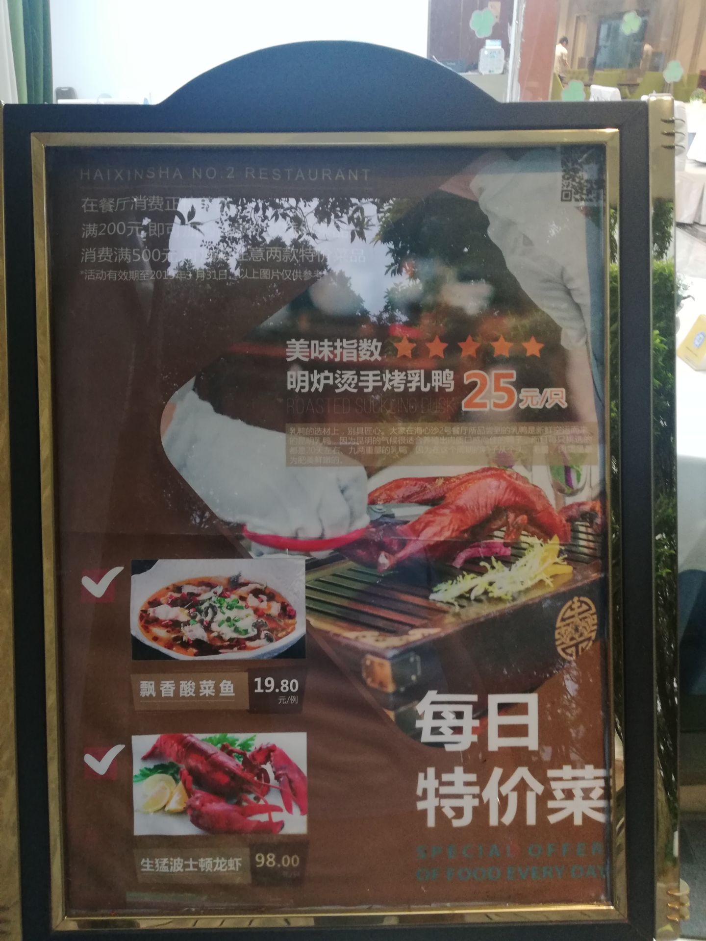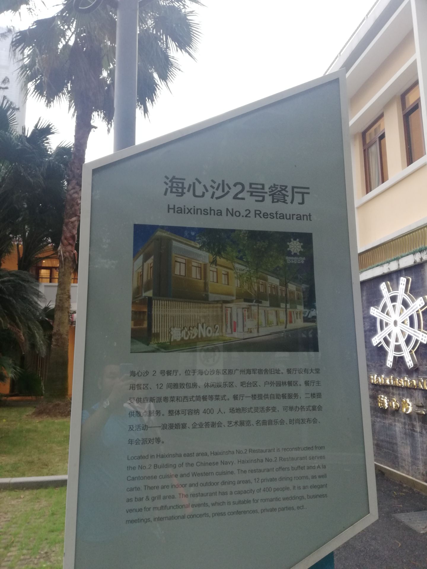 早就听说在海心沙上面有一个神秘的餐厅,他就叫做海心沙2号餐厅,这次借着机会,来这里好好的品尝了一下这个餐厅。整体下来的打分其实并不高。 服务方面没有得到应有的服务的效果水平,虽然广州有服务费,但是他们的服务水平真的不高,服务员总是没精打采的,有时候叫他们也没有理睬 虽然主打的是粤菜,但是做出来的菜的口味感觉并没有想象的那么美,几个广州当地的朋友品尝了之后,也没有给予很好的评价。