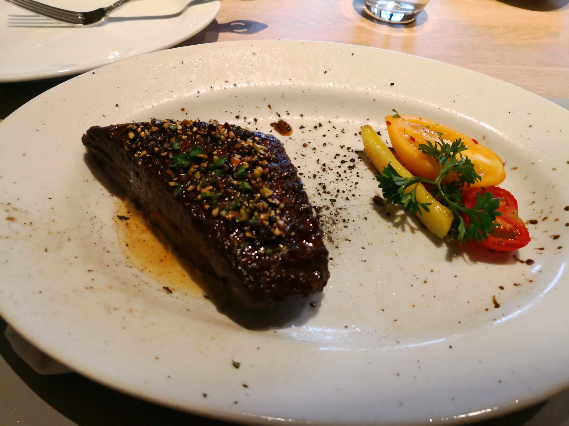 ...错,端上来的时候滋滋响,油一个劲往外蹦,盘子也特别烫,可能是为了牛肉能够保持温度,味道非常不错牛肉做的不错,端上来的时候滋滋响,油一个劲往外蹦,盘子也特别烫,可能是为了牛肉能够保持温度,味道非常不错。沙拉差点意思,里面还吃出来一根头发,虽然给退菜了,但是这种餐厅还能吃出来头发,实在不应该。