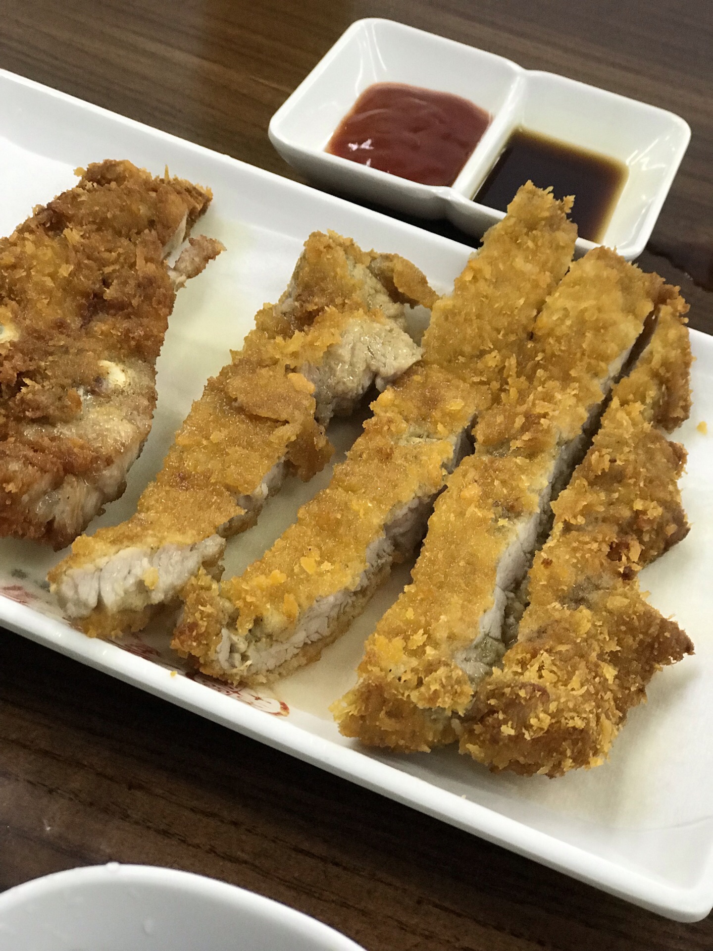 炸猪排就比较一般,大骨头和筋占比很多,真正入口的部分差不多只有一半了。最近去,发现价钱略有上涨