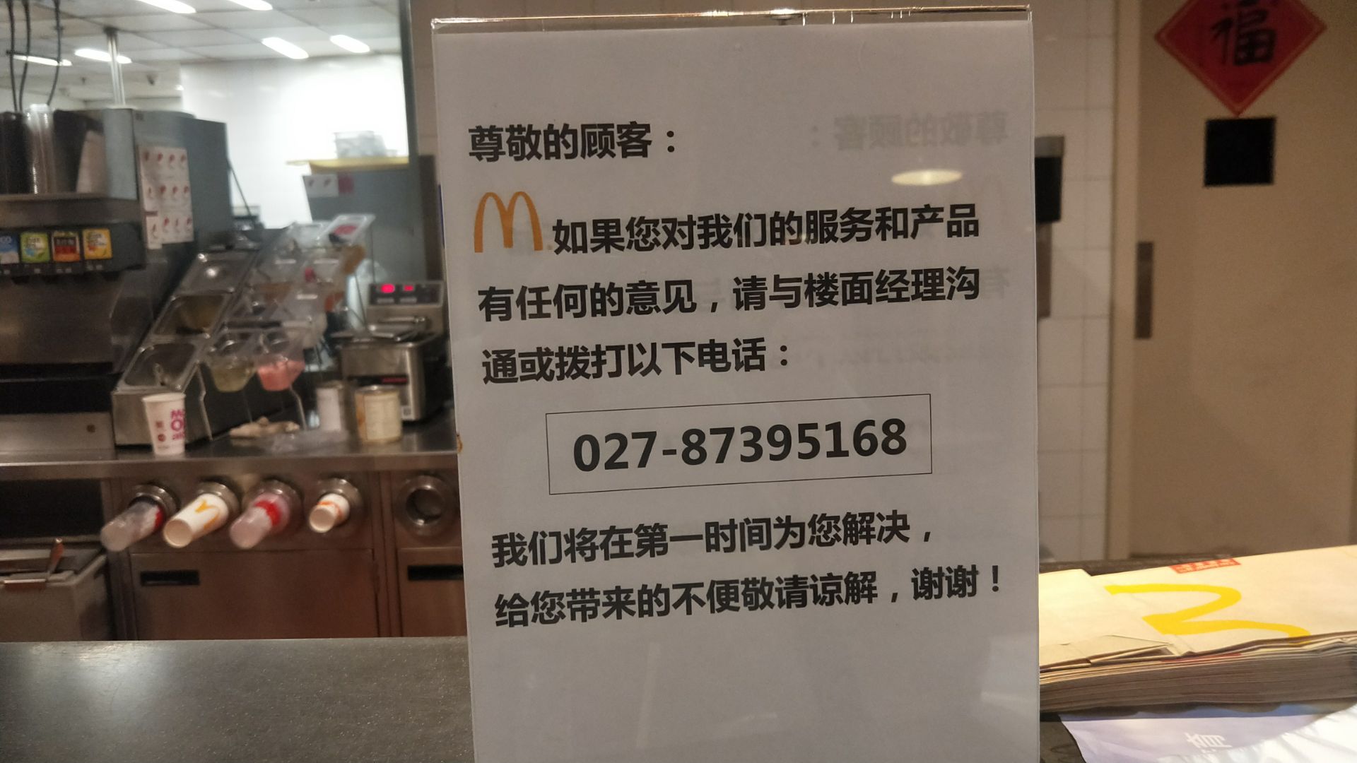网友2019-07-13环境不错,洗手是自动感应手搓的。在这点过餐,吃过外卖,领过免费雪碧这家麦当劳(崇文广场店)位于雄楚大道268号A座一楼,是我在武汉去的次数较多的一家麦当劳店。在这点过餐,吃过外卖,领过免费雪碧。环境不错,洗手是自动感应手搓的。