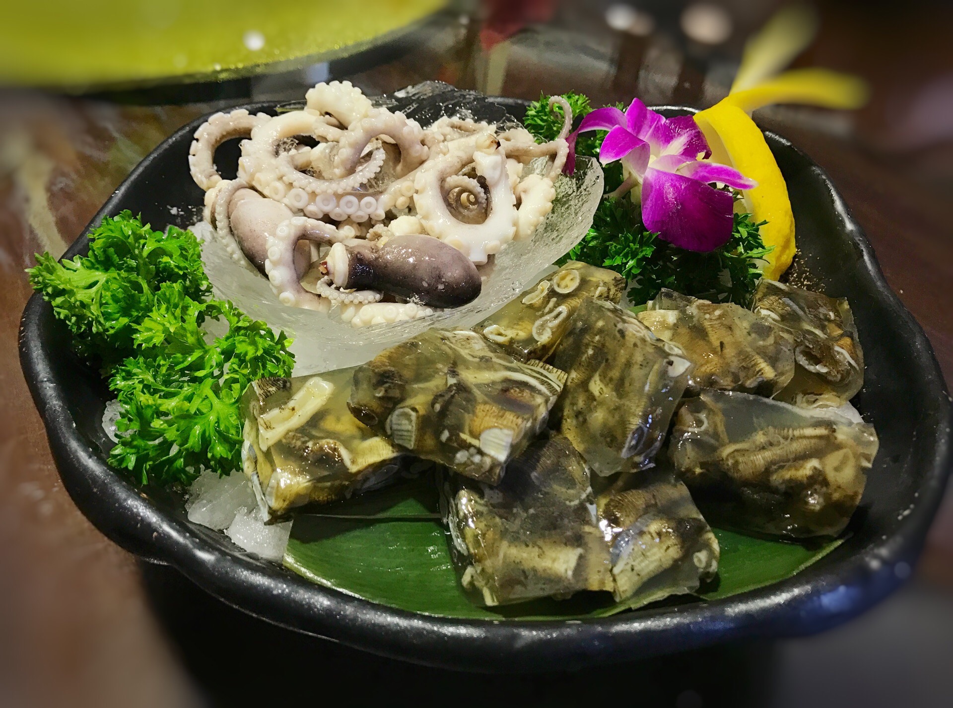 土笋冻拼章鱼# 闽南常见的开胃冷碟,精髓体现在品质上,沙虫大而多,入口有胶质的口感,章鱼脆嫩新鲜