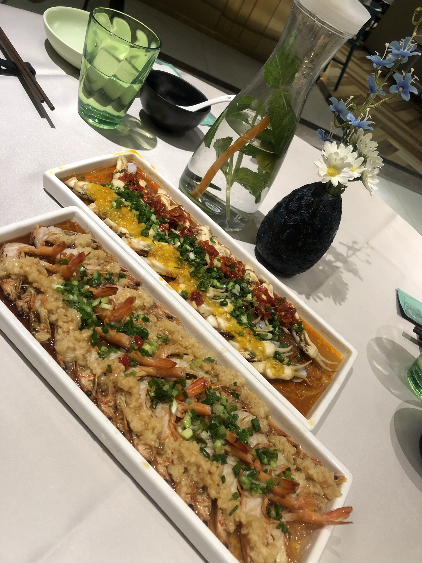 环境好很清爽 以海鲜为主 蒜蓉开背虾、酸汤肥牛、蛏子很肥、网红蛋黄鸡翅超级好吃,最有意思的是甜...环境好很清爽 以海鲜为主 蒜蓉开背虾、酸汤肥牛、蛏子很肥、网红蛋黄鸡翅超级好吃,最有意思的是甜品:麻将牌,其实是椰子布丁,真的挺好吃的