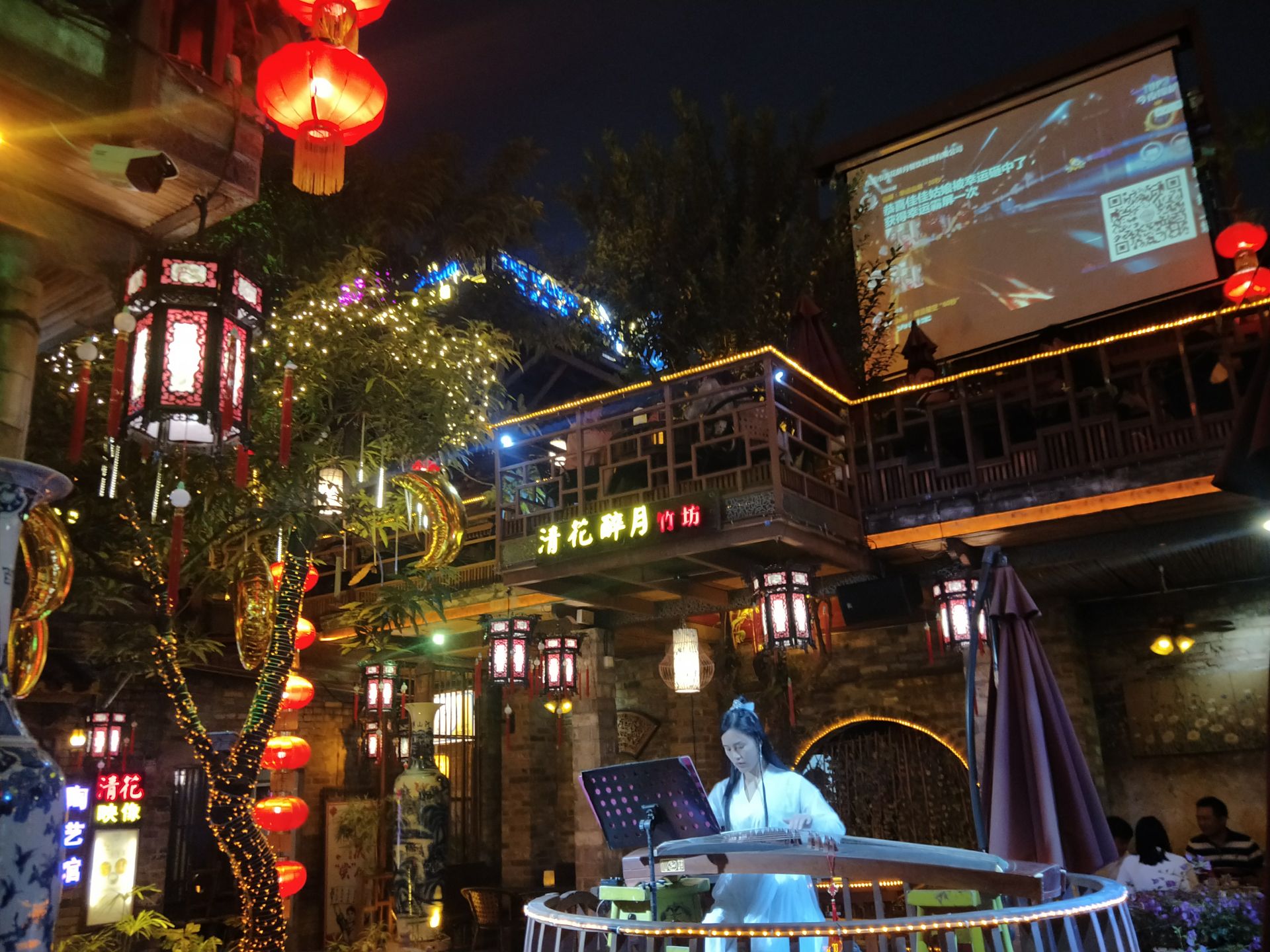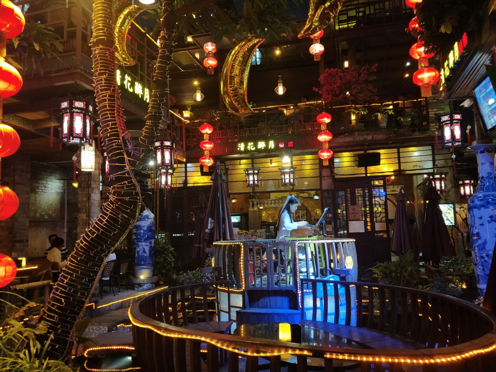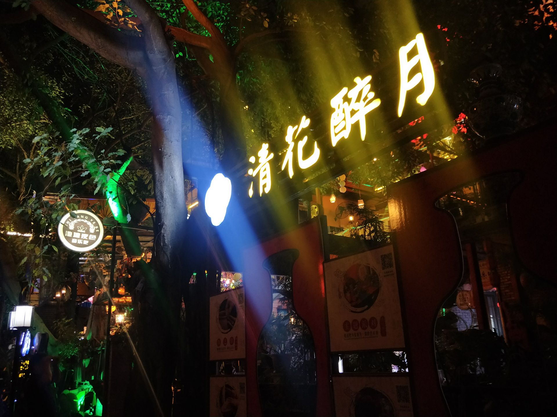 清花醉月位于东莞市下坝坊酒吧街, 是一个非常具有标志性的餐饮酒吧店。 建筑为木质机构,呈花园池塘式四合院布局, 空间整体朝上延伸,很有特色。 一层经常会有驻唱歌手乐人演出,很有氛围。 店里的清花醉月鸡尾酒味道也是不错。
