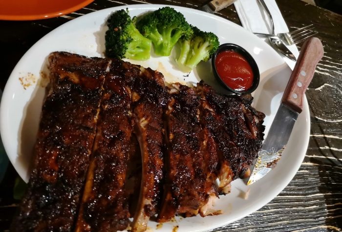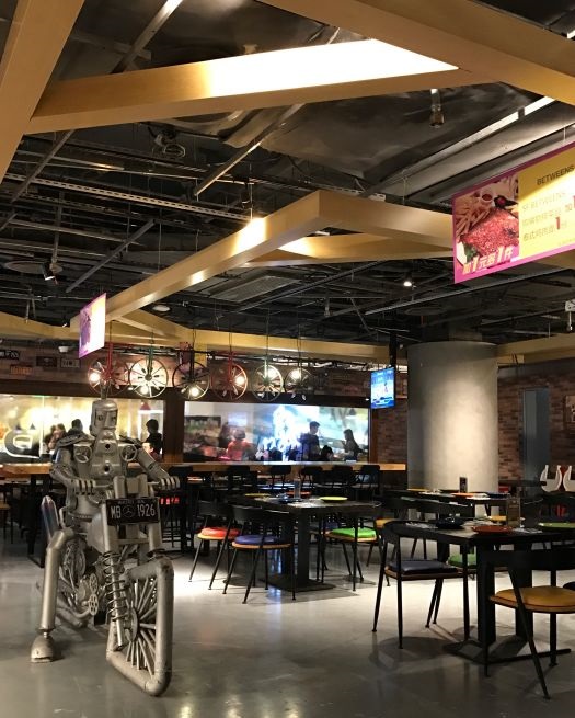 在百脑汇的5楼,位置还是比较好找的。两个人点了猪肋排套餐和三层芝士汉堡。蘑菇汤里有颗粒状的蘑菇,味道比较浓郁,不是奶油的味道是蘑菇的香味,胡椒放的可以再少些,汤有些辛辣。猪肋排是煮熟之后又烤的,里面的软骨都是酥的,外面烤的那一层很好吃。再说那个三层汉堡,我的天,满满的芝士,芝士的味道不是特别浓,比较淡,话说我们就是冲着这个来的。两个人完全吃不完,三个人可以。
