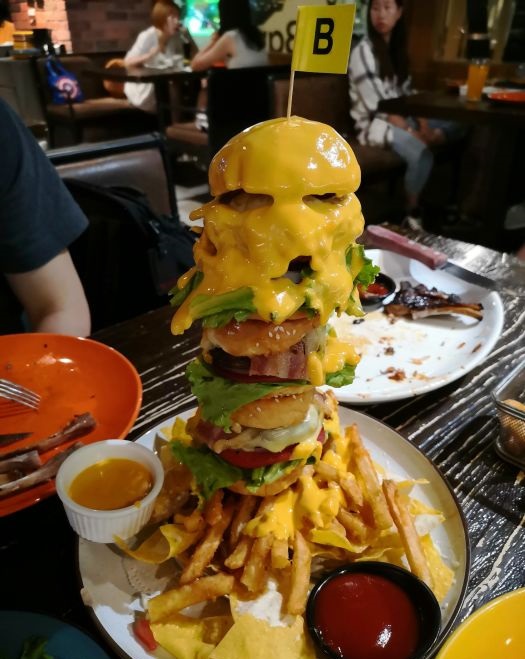 再说那个三层汉堡,我的天,满满的芝士,芝士的味道不是特别浓,比较淡,话说我们就是冲着这个来的