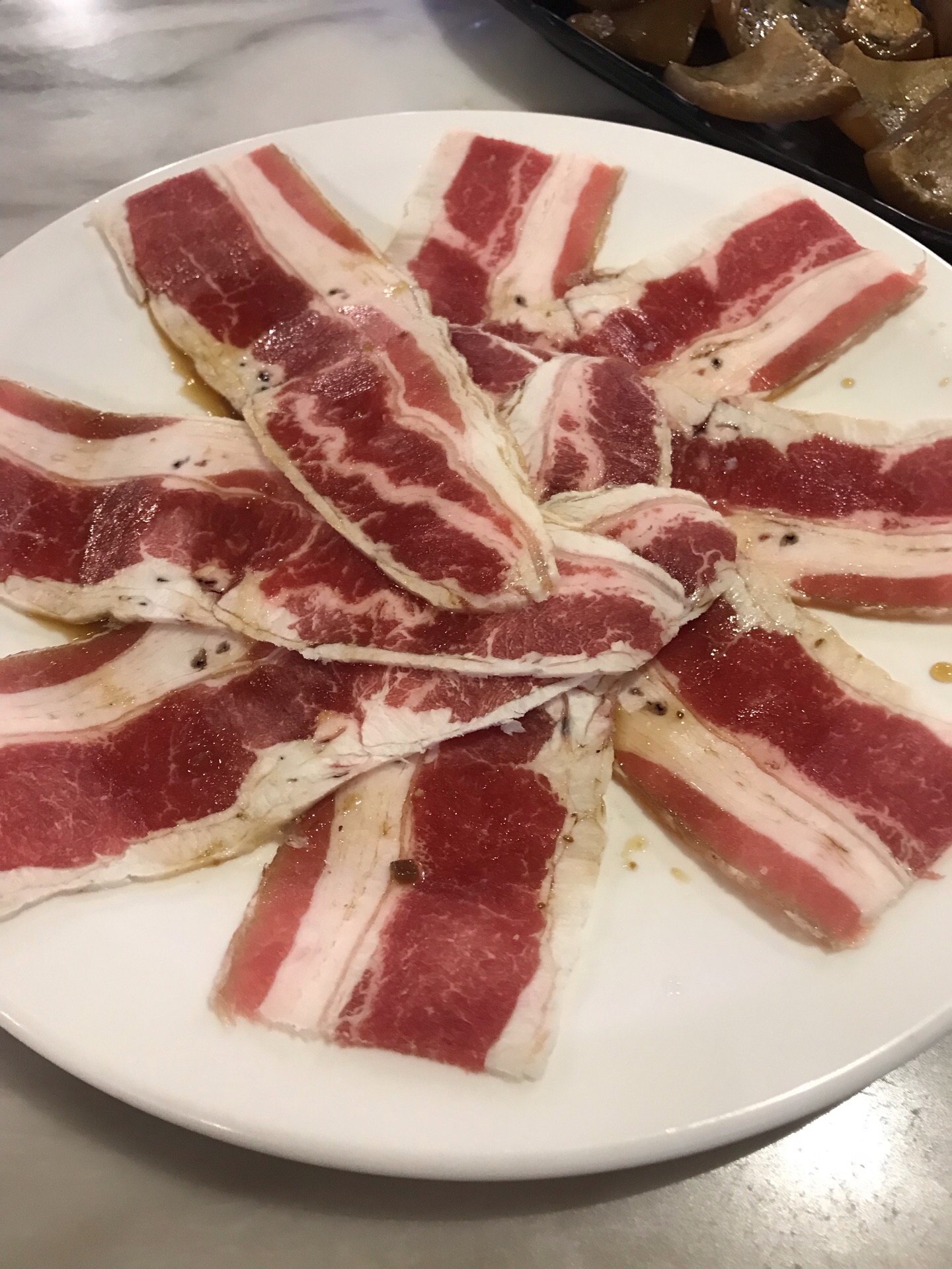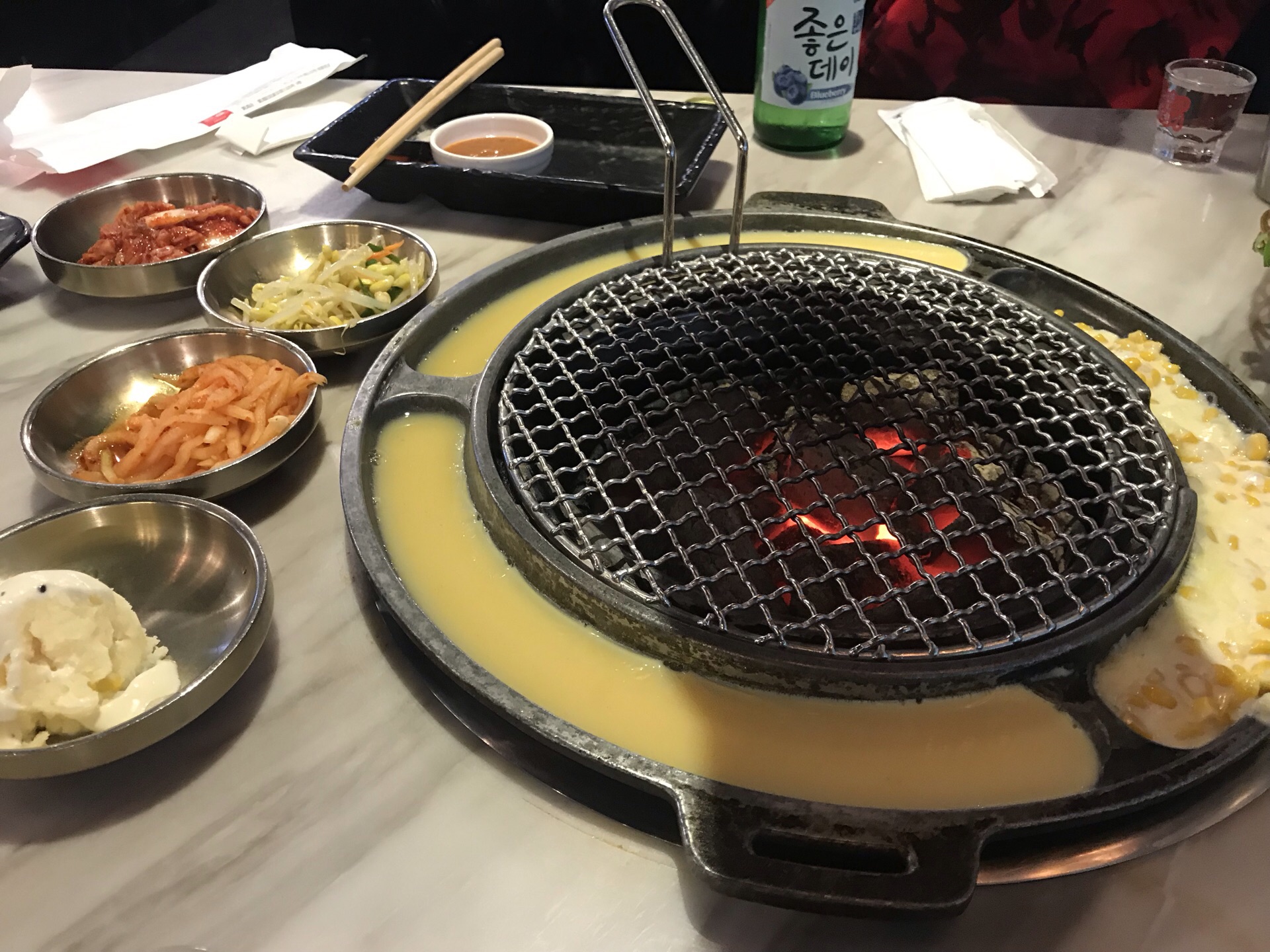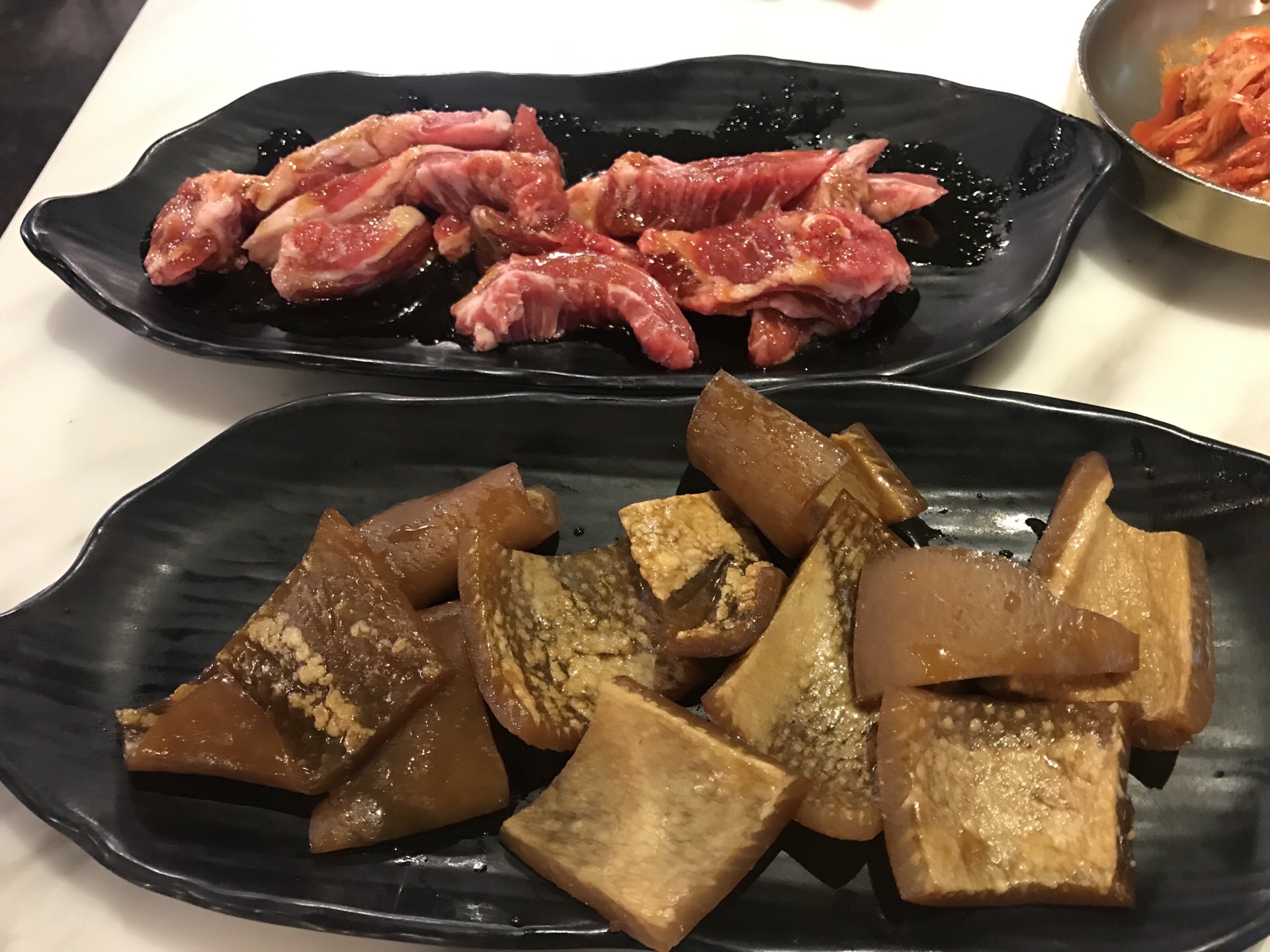 一直对韩国料理情有独钟,几乎吃过好多店,搜到这家店评分高的就想来试试。这家店在上海也有好几家分店,这次离徐家汇近,就来光顾一下。进到店里,环境不错,地方也蛮大的。一般韩料店猪皮不太有,看到菜单上有立马下单,端上来一看样子不怎么样,量也少,但烤过以后,味道还不错。其他点了2种肉,牛小排和牛五花,味道都可以,就是量很少。不足的地方就是为什么会使用一次性餐具来吃韩料,感觉不太正宗的。还有服务员倒在烤盘边的玉米粒有些已经掉在桌上,居然把这个从桌上摇起来再倒进去,居然是当我面这样操作,我也蛮佩服你的。