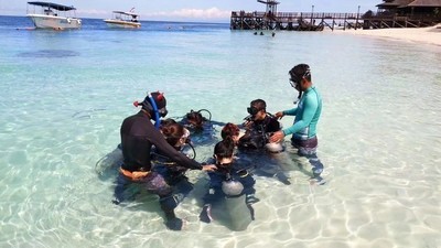 马达京跳岛路线值得推荐,会去马达京岛,邦邦岛,汀巴汀吧,深潜也是一样的路线,我们报的就是深潜一日游,我们参加的是体验潜,教练一开始会仔细的和我们说好潜水知识,然后很用心的教我们一些潜水技巧,然后在水下试验,之后才会真正带你去潜水。定深潜的时候客服小哥哥就是给我们推荐马达京路线的,说马达京路线的水下生物最丰富,果不其然。第一次近距离看到海龟、珊瑚、小丑鱼,兴奋到爆炸,大海真的是太神奇了,这次体验潜以后我就兴致冲冲的在他家又报了潜水考证了,哈哈哈,在潜水员的路上回不了头了。 去的是 仙本那 最远的几个海岛了,相对水质更好些,有顶级的 白沙 滩,丰富的海洋生物,是 仙本那 比较精华的一条线。 马达京岛 ,汀巴汀巴岛和邦邦岛上都有度假村酒店。汀巴汀巴有很多大海龟,马达京水下有艘大沉船,都说船上还有个Post邮箱,可惜没看到。有证的可以来这里FD,没证的可以来这里浮潜,也可以体验潜水。 仙本那 镇出来开船1小时左右,抵达碧海蓝天的【 马达京岛 】,马达京也是 仙本那 除了 诗巴丹 之后,大家最喜欢的一个岛了。一大一小两个小岛屿,由双面沙滩连接,沙滩出来有海底大斜坡,生长着丰富的珊瑚群,蓝色的大海,像毒药一样,令人不能自拔。