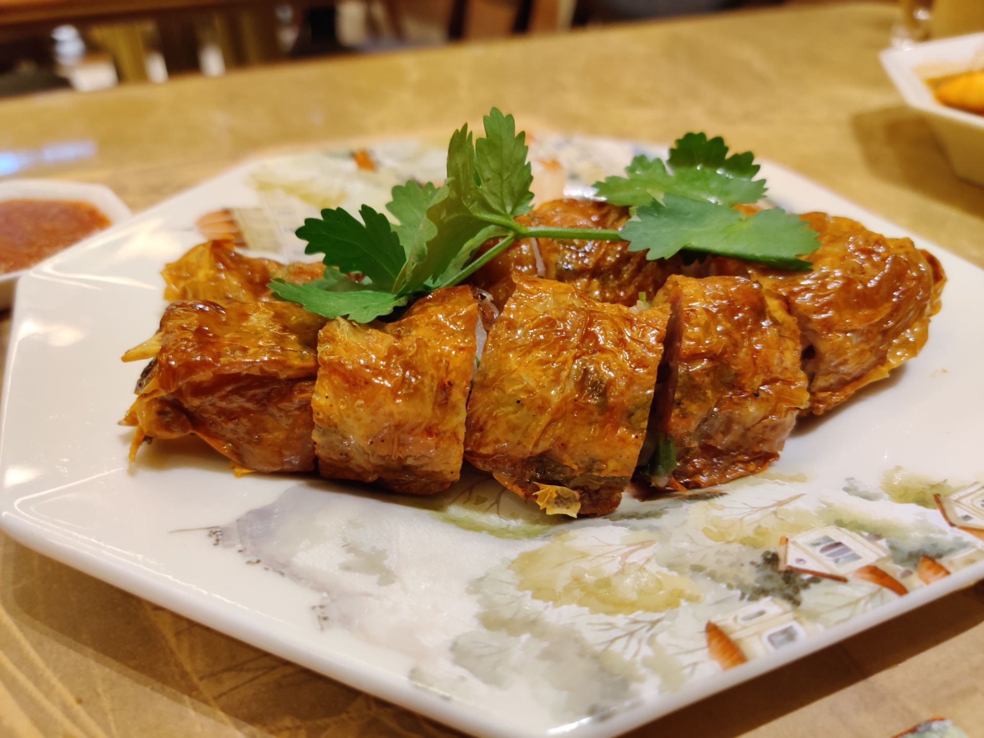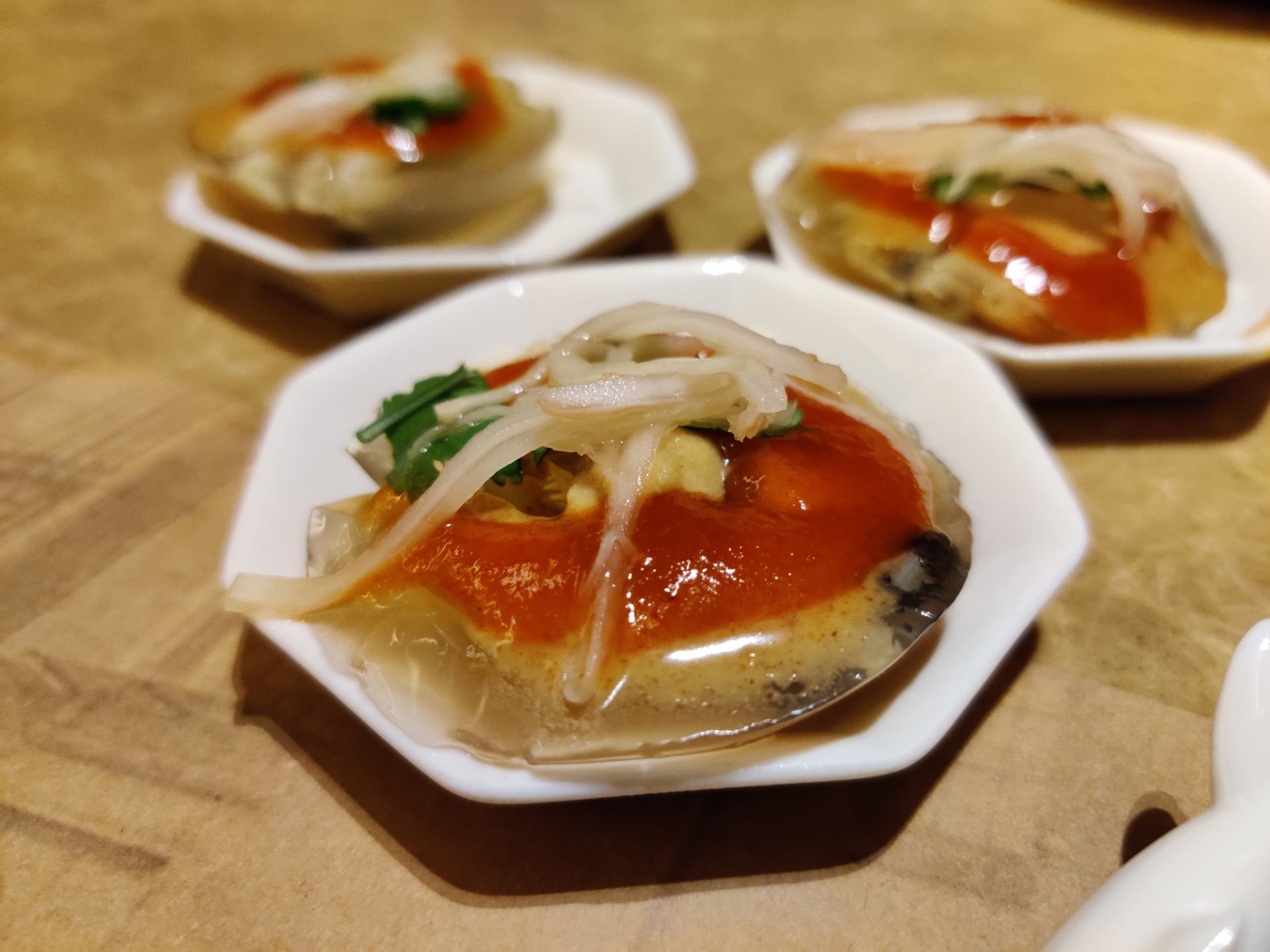地道赞,这个名字有点意思,地道很赞的意思,火车站双涵路口这家地道赞,主营的就是地道的厦门小吃厦门美食,双海豚喷泉金色的大门,还有店里各种精心装饰,环境很有档次。服务也是细致周到,看到茶水喝完了很及时的给加满。店里的八角碟也很漂亮,开场点心有蛋花酥和鱼皮花生,也是小时候的味道。 土笋冻 :高温酷暑,土笋冻作为开胃菜正好,冰凉的Q弹鲜美结合芥末甜辣酱,沙虫胶质丰富。 五香:外皮酥内馅香,香酥脆爽满嘴肉香。 海派芋包:绵密松软的芋泥,芋泥带甜味,馅料则是咸香,这样的搭配带来双重口感 酱油水红虾:酱油水是厦门美食的常见做法,大只鲜甜弹牙的大红虾,酱油水的做法保留了红虾最棒的鲜美度。 炸醋排:听服务员说采用精选的进口葡萄醋,这样精心腌制的醋排更够味也不会上火,炸好的醋排酸香可口肉香十足。 最后再点一个冰石花,做为饭后甜品,清凉降火解腻。