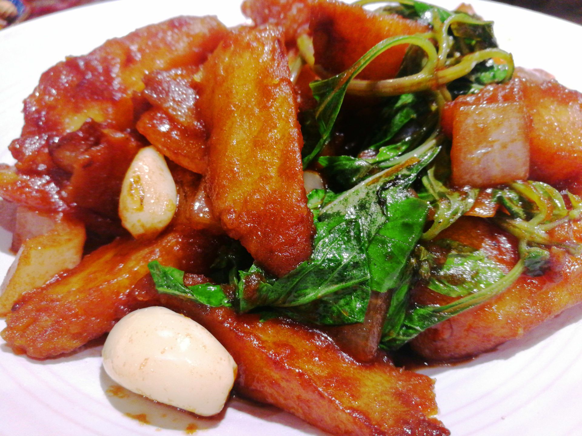 没去过时心心念念,去过后恍恍惚惚……这可能就是对她城有他的最直观的感受了吧! 进店时就感觉环境有点小呱噪,好像是送货的大叔在和店员交涉配送的产品重量问题,嗓门之大,情绪之鸡冻,正对着出入口,简直了……入座后想要上个洗手间,结果被后院的WC给恶心到了,可能也是后来没有食欲的原因吧~~~~~~~ 银芽空心菜(22):银芽便是豆芽菜,本身就寥寥数根的银芽,和同色的洋葱混在一起。空心菜还偏老,总之非常一般。 三杯土豆(38):页面上写的是三“倍”土豆,以为是豪华版土豆阵容,结果发现原来只是个错别字而已!然而忽略咬文嚼字的细节,这“三杯”的口味也没有见的很出彩,就只能说Just so so的程度…… 椒麻鱼(88):“椒麻”系列是店里的招牌菜,可惜鱼肉不够新鲜,量少且刺多;汤底偏油,又辣又咸……最可气的是同样隔壁桌的椒麻鱼,人家可是满满的一盆!我们却只有2/3…… 话梅排骨(58):推荐的MVP选手,看名字想象着味道还不错,上菜时看到卖相已经减了一半分,口味更是“不可描述”——又咸又甜,骨头也都奇形怪状,而且小碎骨太多了~~~~~~ 西瓜汁(48):全场唯一一道还比较正常的产品,就着好吃的花生,倒是喝了个精光。 秘制花生:每桌用餐的客人有一盘免费的花生,选用的是小京生,用山核桃味做调味,好吃到飞起!想问下服务员能否再续一盘花生,被告知不能续,但是可以单卖,25元一包500g,说实话味道还不错,价格小贵但并不离谱,于是一人买了一包肥家,哈哈,这两天吮到舌头皮都破了,但还是欲罢不能的想要吃~~~~~~也算是拉平了心里差距了吧~~~~~~~~