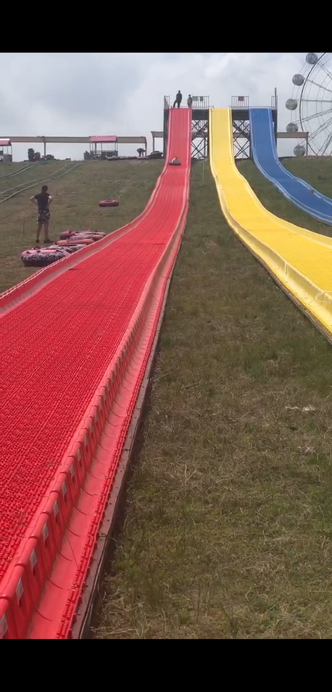 自驾希拉穆仁草原路过,小朋友被彩虹滑梯吸引去的。需要买门票,但是没有标注票价,工作人员说联票128元,票子上两个项目只能玩一次,其它可以随便玩。陪同人员不玩也要买全票!! 三大三小感觉陪同太贵,准备放弃,于是工作人员说单玩也行50元一个项目。最后以陪同20,联票120元的价格进入。园内有迷你高尔夫,真人cs什么的,还是可以玩玩。但其实最吸引眼球的彩虹滑梯并不怎么好玩,很长的滑梯滑下来到一半就停住了,感觉坡度不够,滑不到底。