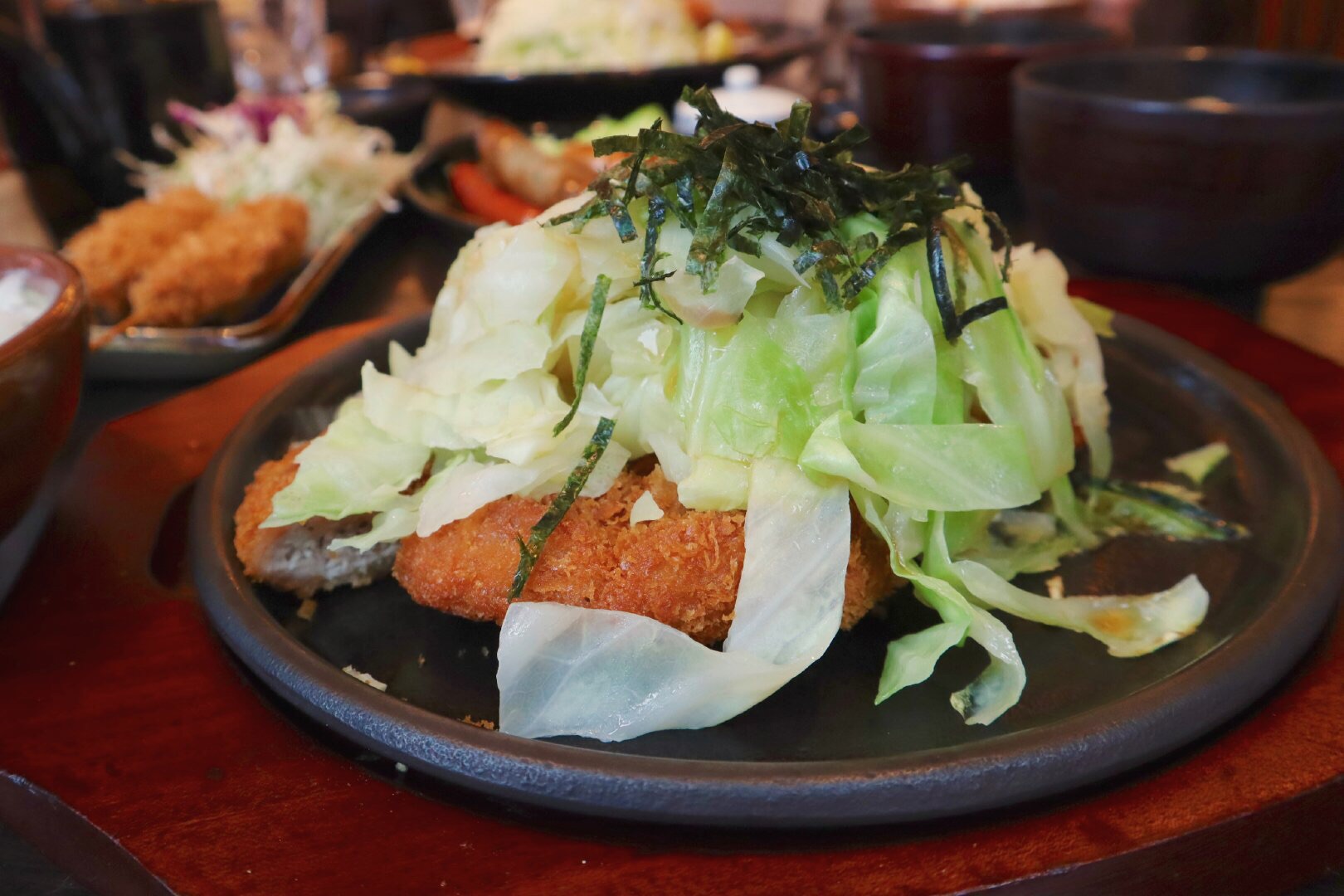 炸猪排除了略油腻,跟和幸差不多水准以外,倒是没什么好说的。但是它们家招牌的猪排茶泡饭,我要说一句:这什么东西。 虽然是会有煮得软fufu来盖饭的猪排,但是人家至少还会打个蛋花淋点酱油,这个茶泡猪排真的就是飘着油花的茶泡猪排啊…连盐都不加的…配的淡茶煮包菜也很意味不明。然后小菜一个好吃的都没有,香肠上桌会自己唱凉凉,因为真的有点凉。 但是它们家有全世界最好吃的芝麻酱,醇厚甜美,香得不行,别的地方都没有吃到过这么优秀的…一桌会给一整瓶满满的芝麻酱,为了芝麻酱蘸包菜丝,忍气吞声含泪吃了好几次炸猪排。