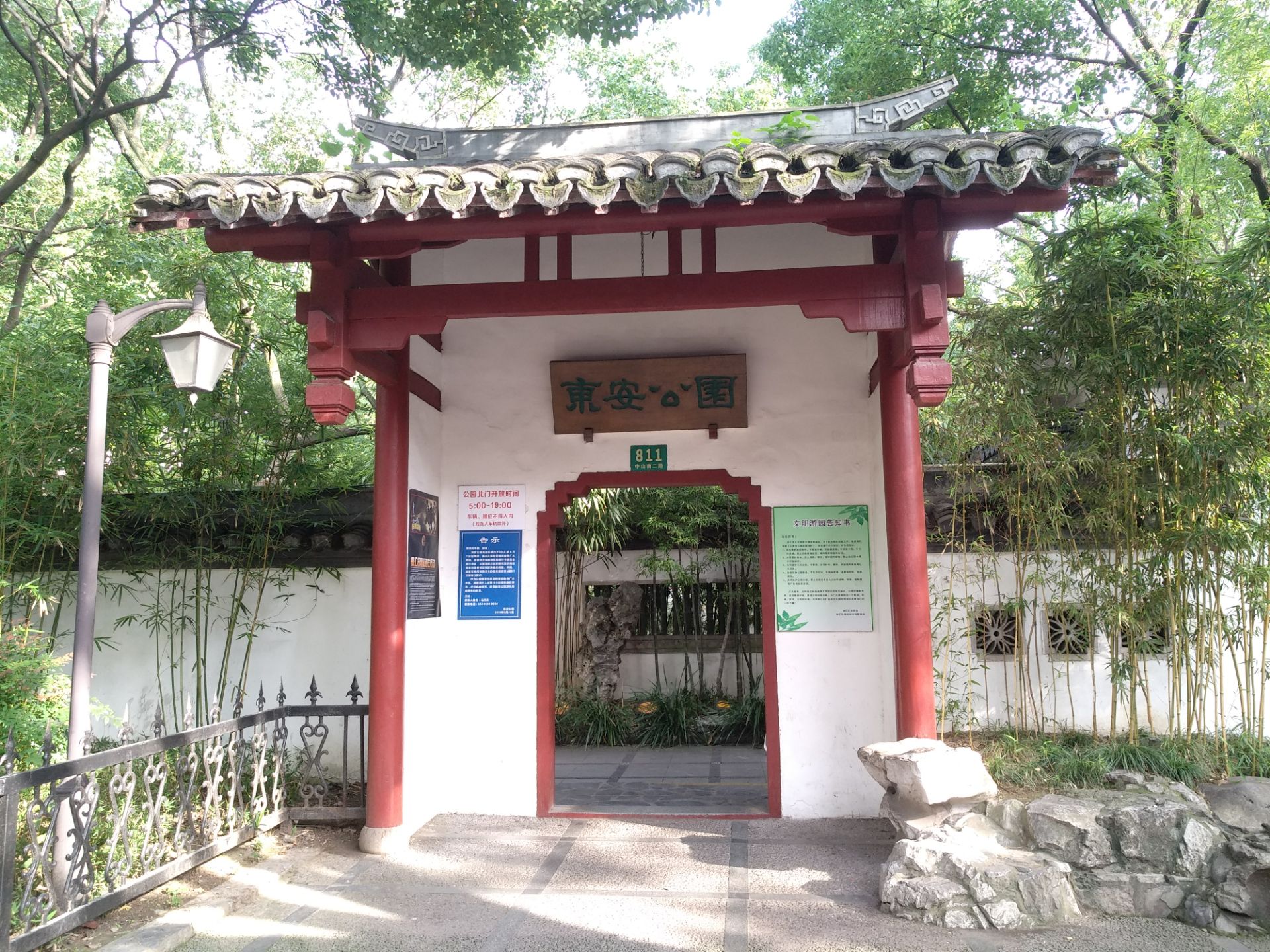 东安公园原为清代张姓私园。一座以竹为主的江南庭园式公园东安公园原为清代张姓私园。一座以竹为主的江南庭园式公园。公园布局采用传统院落与现代园林相结合的方法,通过植物、地形、水面、建筑等园林要素组成自然、简洁的园林空间。