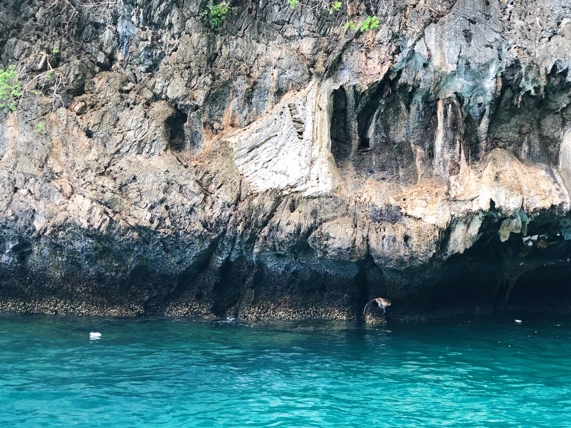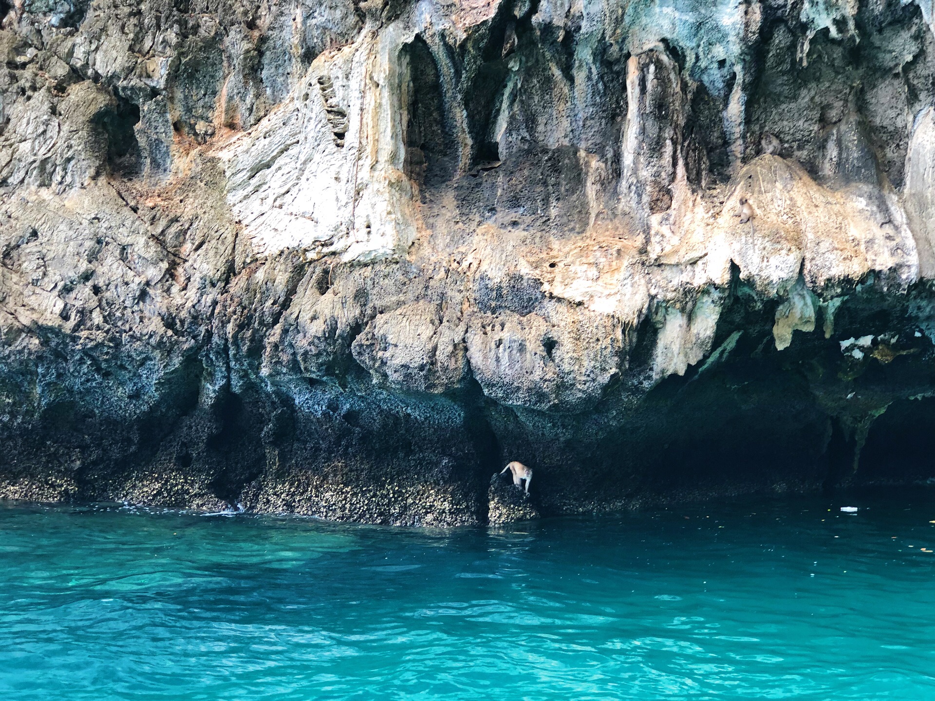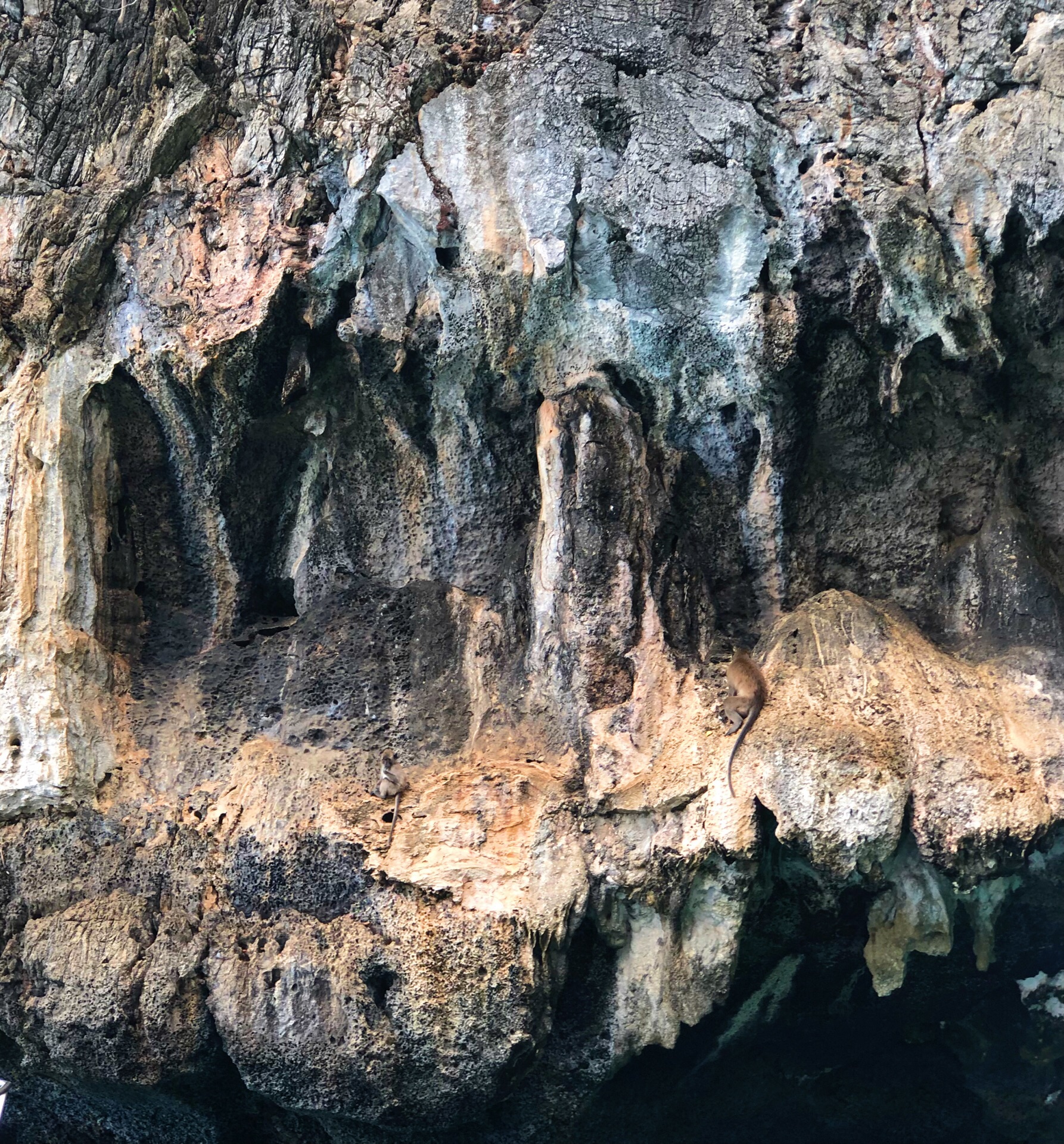 这几张照片,大概可以叫做大家来找茬。猴子海滩现在被保护起来了,一日游的游船都不能靠近,只能在不远处遥望,而且也木有带相机,纯粹靠的自带相机拍了几张。 所以,要很仔细看,才能看到每张照片中峭壁上和角落里的小猴纸们。这一片的猴纸还是蛮多的。
