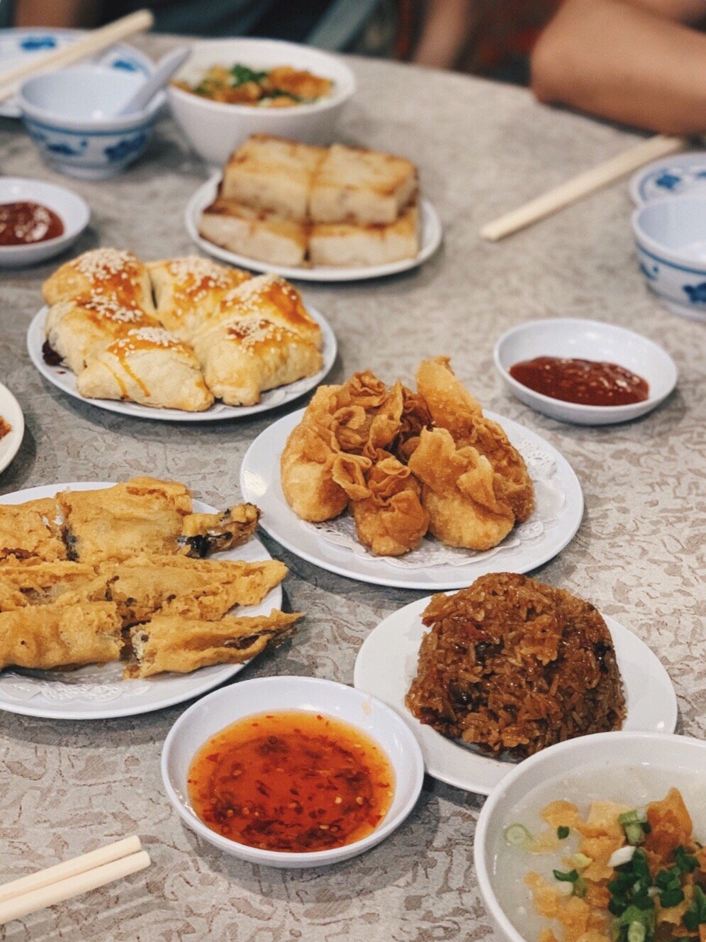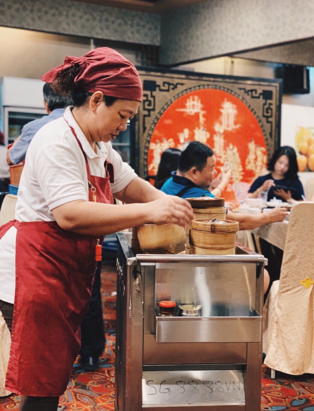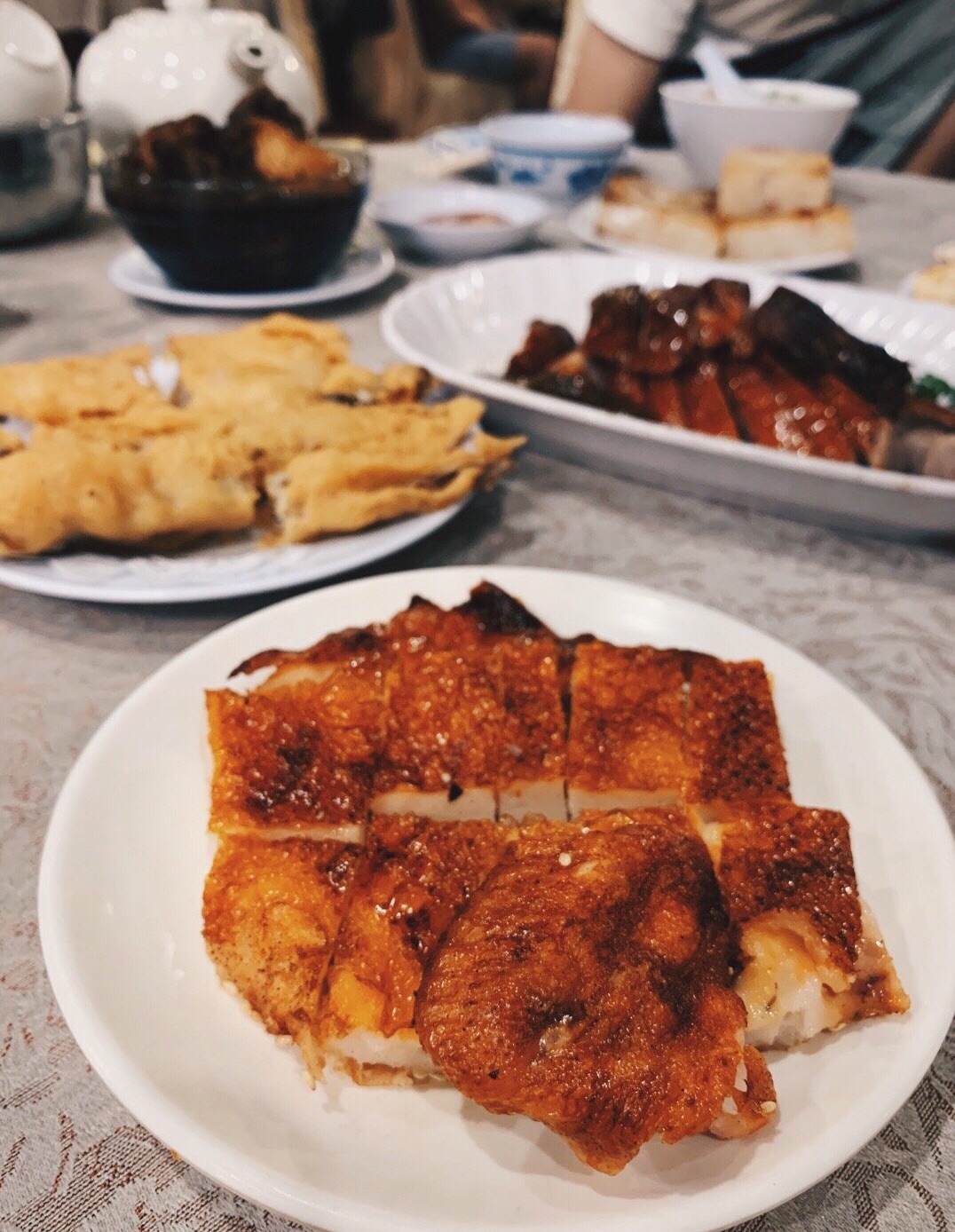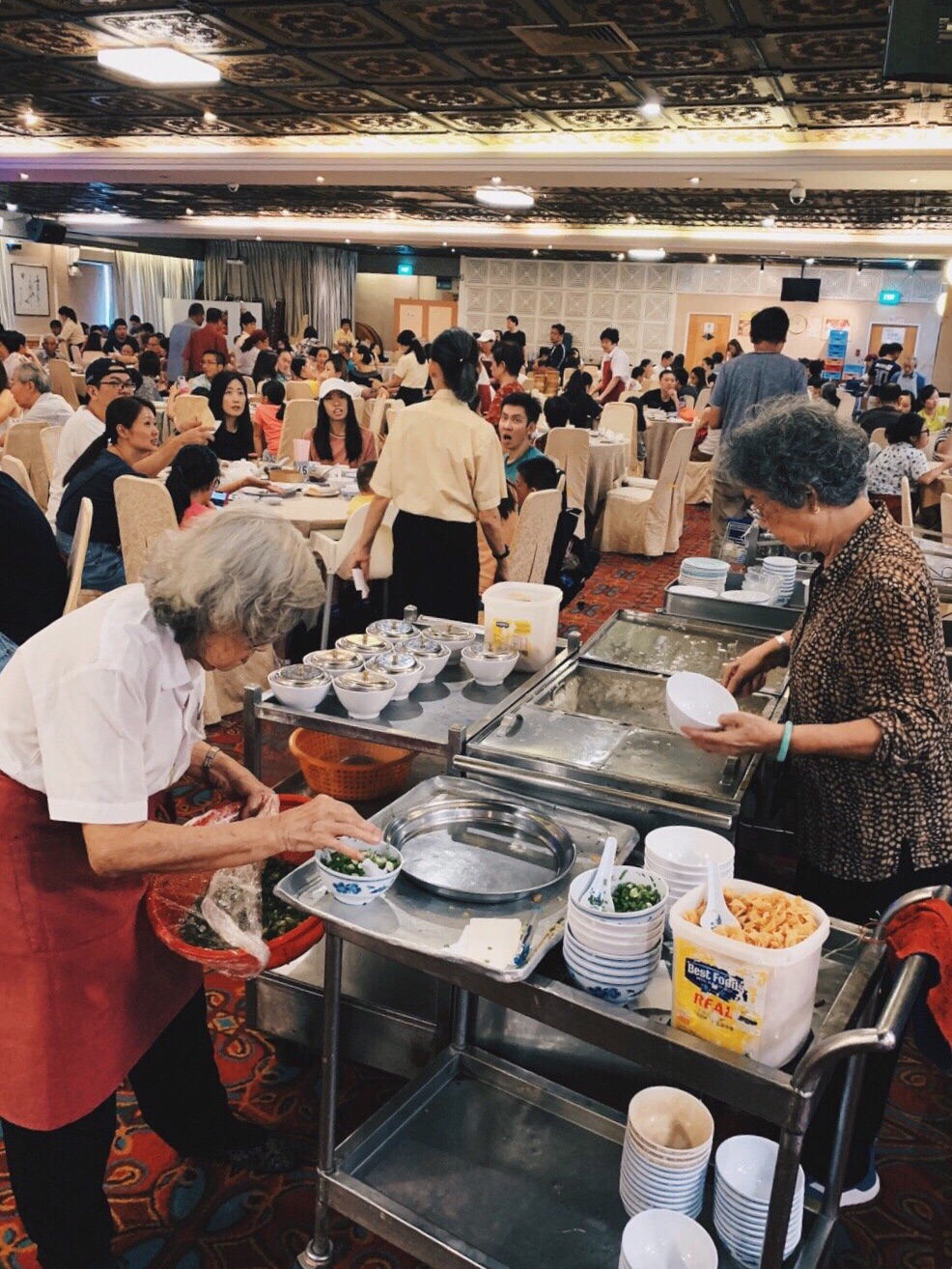 新加坡的港式点心店非常多,小到食阁,大到酒店都可以品尝到各色的港式点心,可是最有老香港风味的点心餐厅还要数红星酒家了。红星酒家位于一个非常不起眼的组屋群内,如果不是朋友带来,自己也是很难想到在如此隐蔽的地方竟然会有一间超级火爆的点心酒楼。进门的时候感觉那排场就像赶赴一场婚宴一样。最特别的就是餐厅内都是推车式售卖,服务员每人都会推一个小车,每个车上的菜品都不一样,遇见自己喜欢的食物就直接叫住服务员,他们就会把美食从小推车里端上餐桌啦。点心的口味还是很不错,非常推荐的是金龙鸡,样子很像烧腊,但口感却比烧腊更加细腻柔滑,配上特制的辣酱,真的非常美味。叉烧酥味道很好,三角形的样子也很特别。还有瘦肉粥,烧鸭,萝卜糕等都很不错的。我们一行五人,着实点了一大桌,虽然每个的分量不是很多,但几个人分着还是很快就消灭完了,之后我们又点了几笼点心,烧卖,虾饺和卤凤爪都还勉勉强强吧,不是很出众。整体的环境很怀旧,餐厅还是保留着很早的装修,服务员大多也都是白发苍苍的老人,非常具有旧时光的代入感。非常值得推荐来吃一次早茶哦。