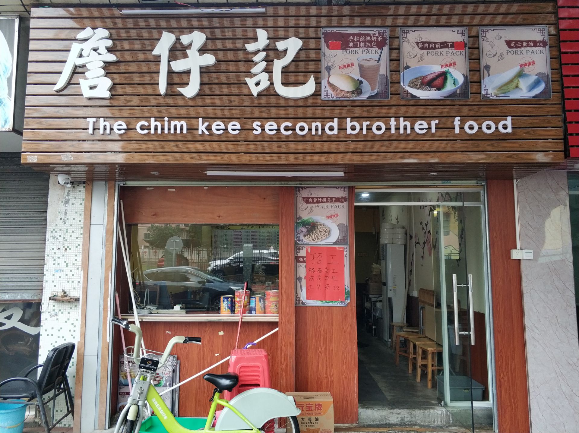 詹仔记正宗澳门猪扒包,种草很久的一家店,因为离住的地方比较远,一直没去试一下,特意挑了一天中午赶过去解馋。 到店刚营业,人不多,没一会客人就多起来了。店不大,座位比较挤。 猪扒包的猪扒够大够厚够香,很好吃。