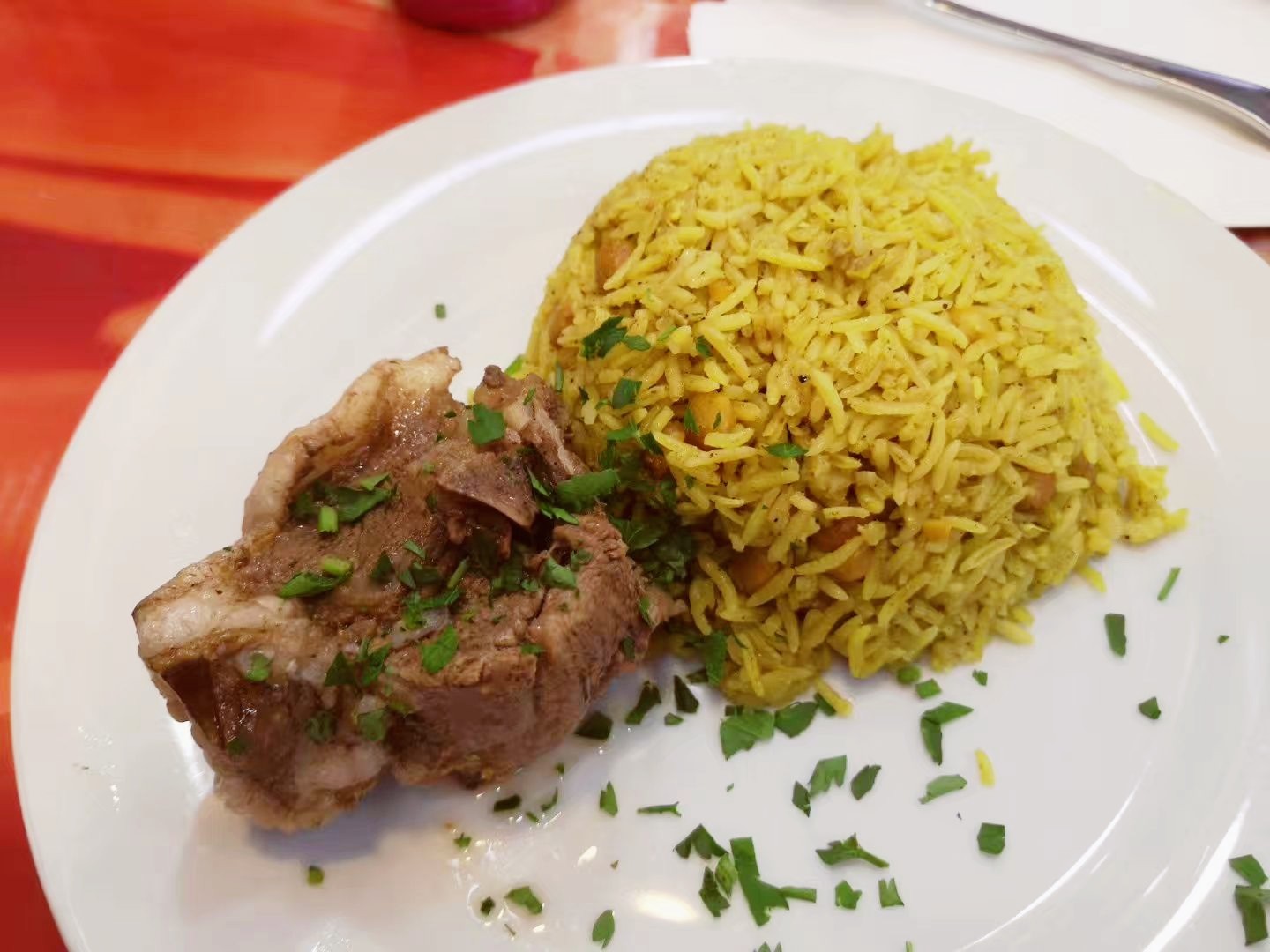 Garlic and Chives,这家餐厅的烤肉比较出名,不是边吃边烤的那种,而是已经烤好的,点餐的时候,可以提前和服务生说明,做成什么样的口味和辣度。炒饭也是它们的特色,炒饭边上还会配上一大块的肉。